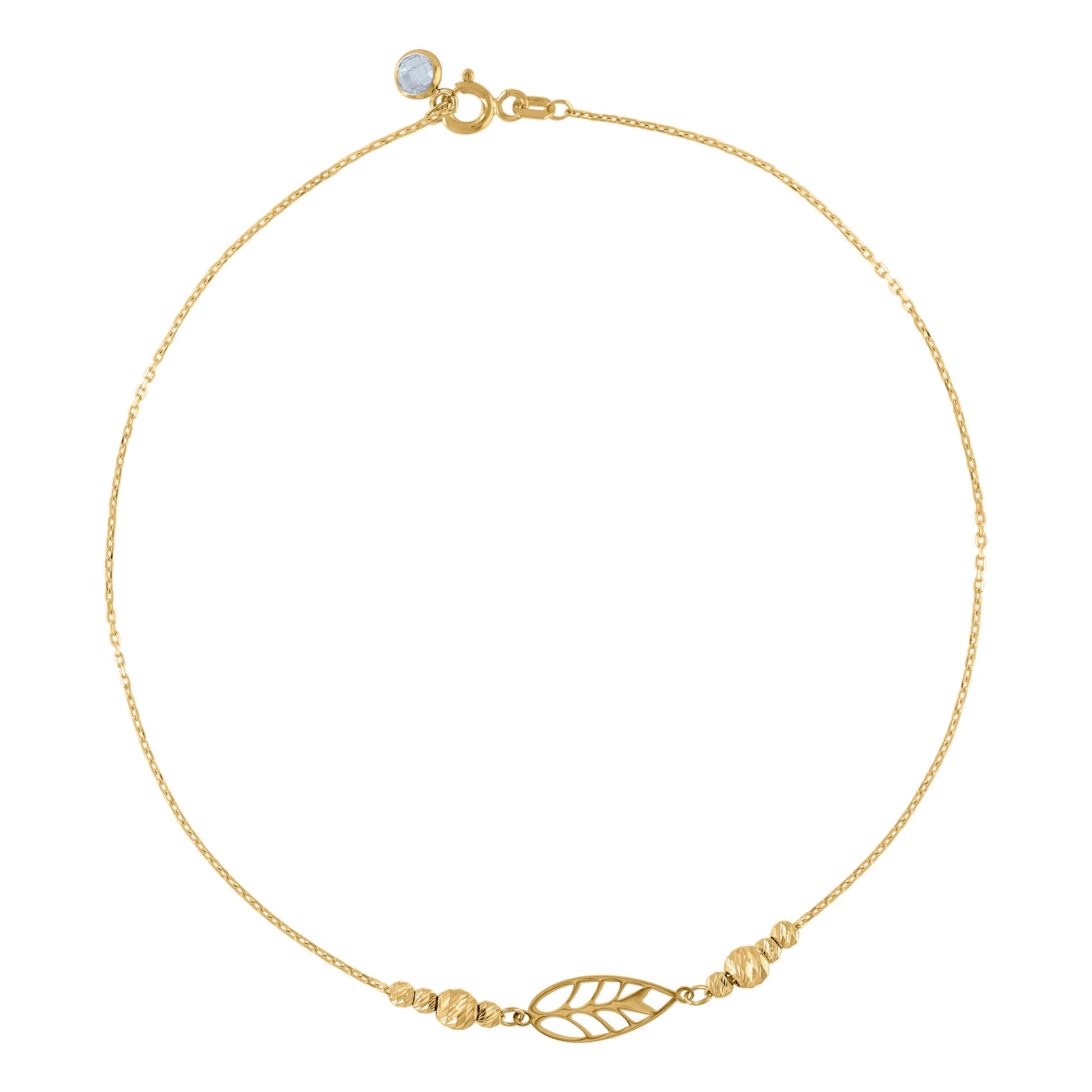 10kt Yellow Gold Womens Cubic-Zirconia Leaf Diamond-Cut Beaded Charm Anklet Size 10 Inches