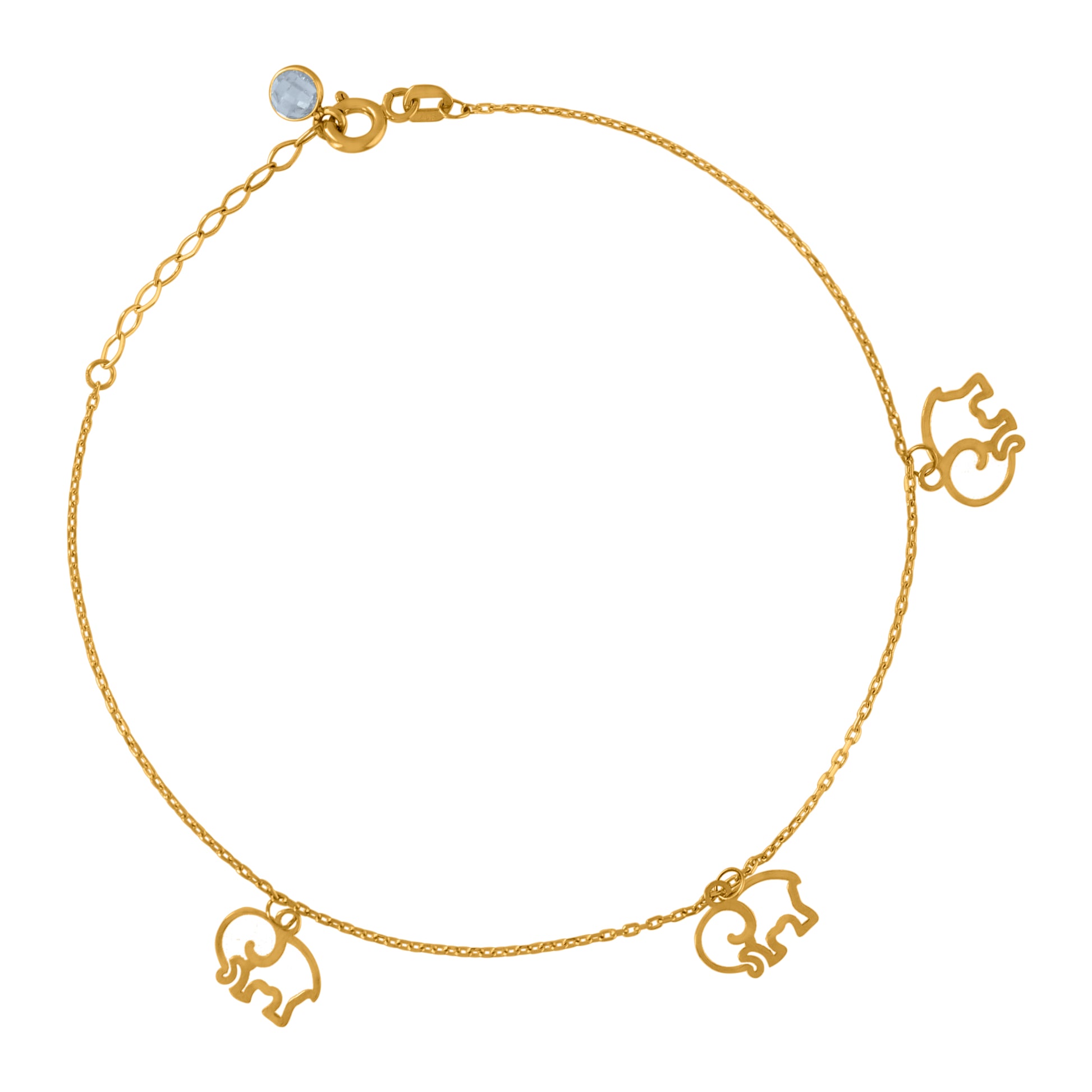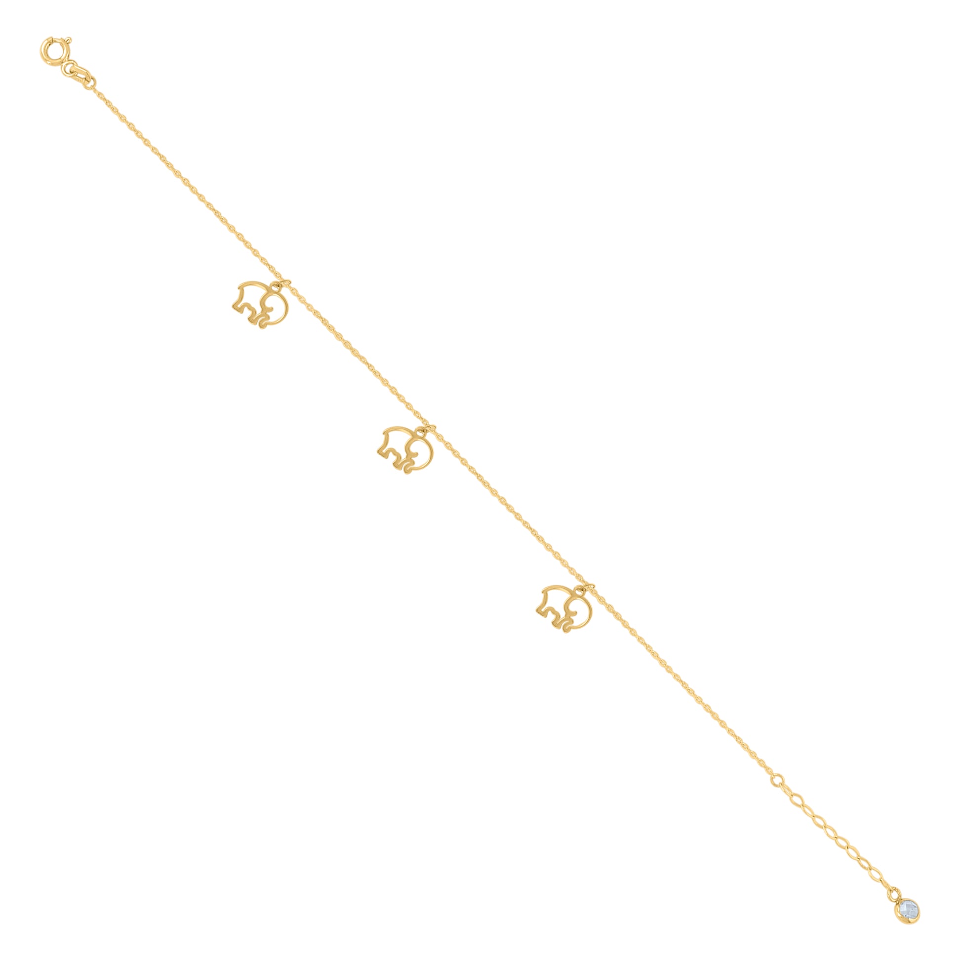 10kt Yellow Gold Womens Cubic-Zirconia Diamond-Cut Beaded Charm Anklet Size 8 Inches