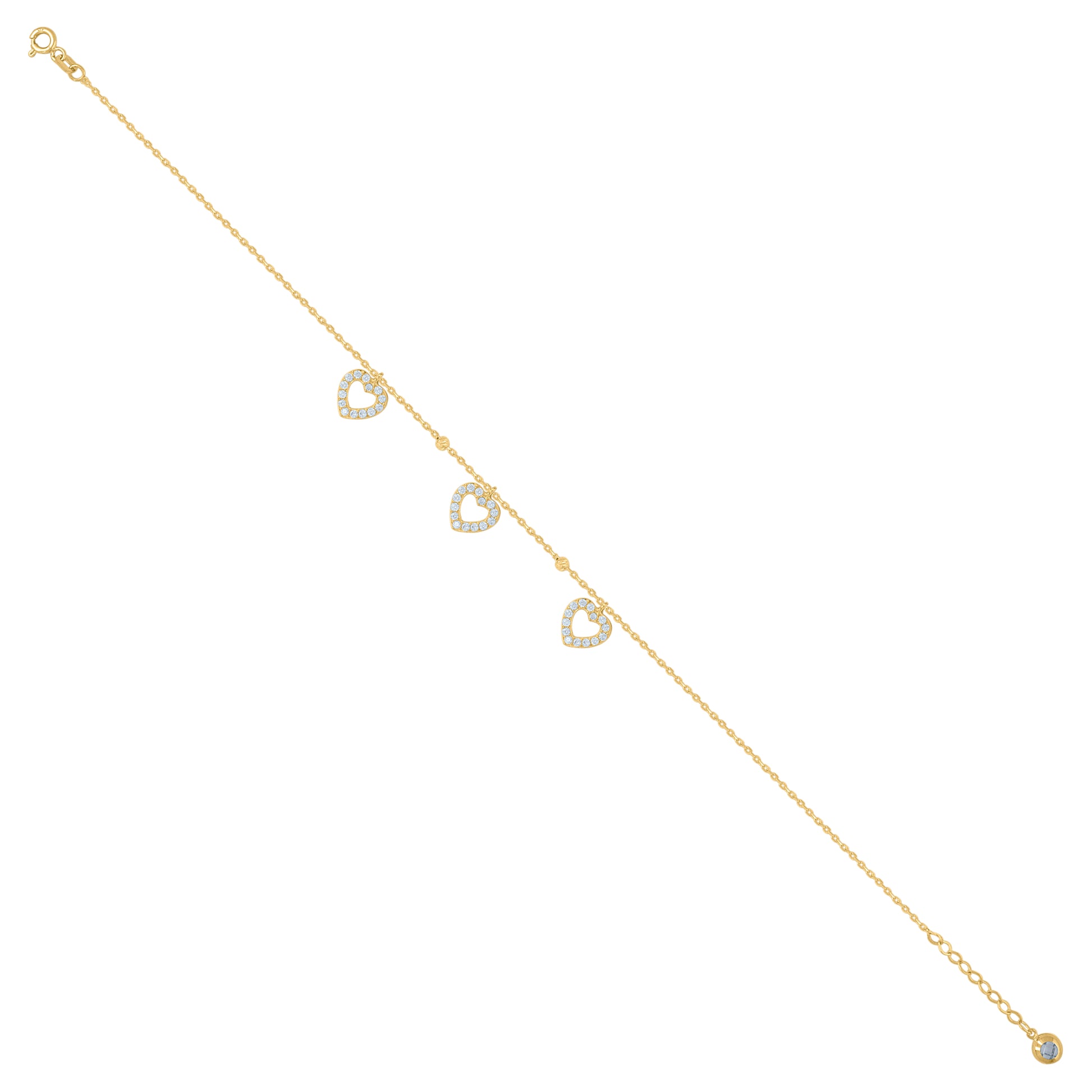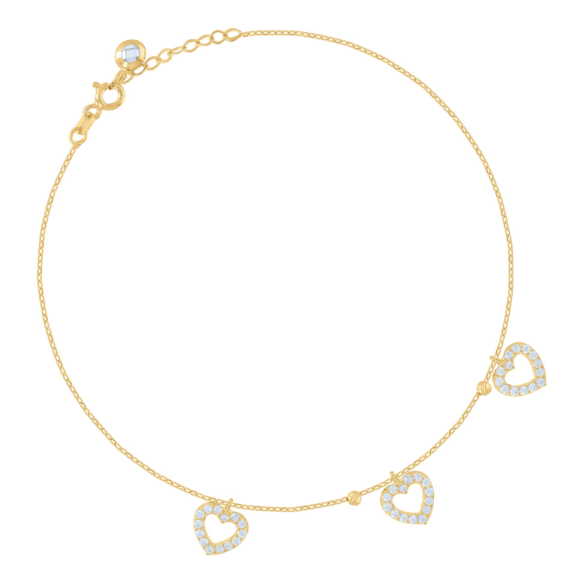 10kt Yellow Gold Womens Cubic-Zirconia Heart Beaded Charm 10" Anklet