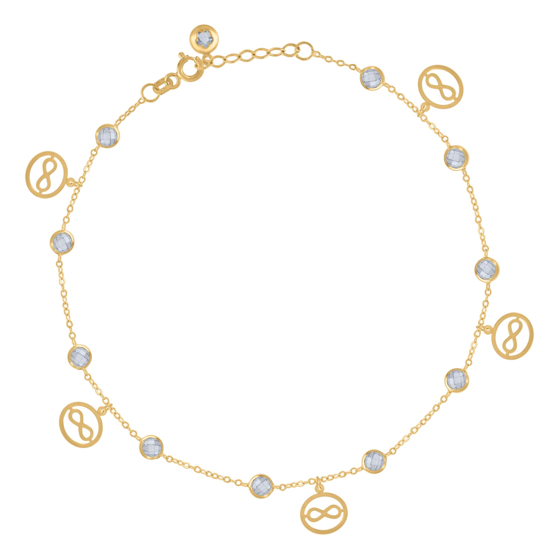 10kt Yellow Gold Womens Cubic-Zirconia Infinity Charm Anklet Size 10 Inches
