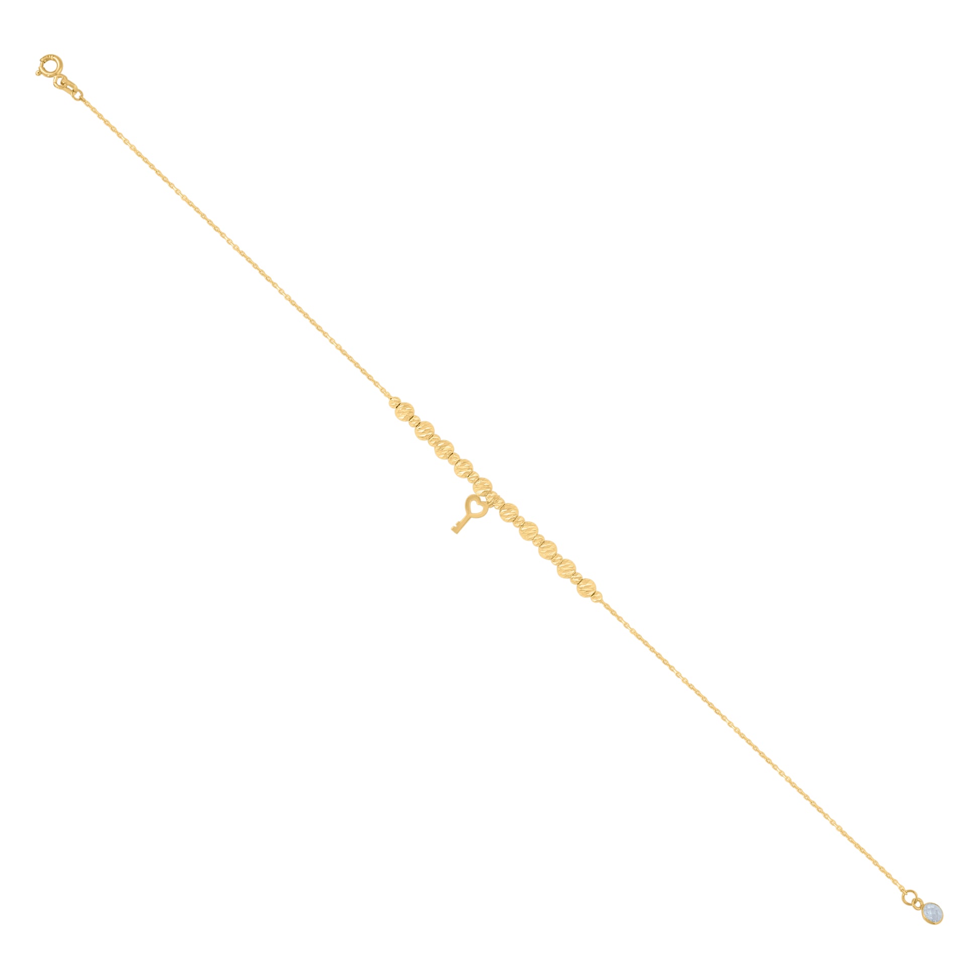 10kt Yellow Gold Womens Cubic-Zirconia Heart Key Diamond-Cut Beaded Charm Anklet Size 10 Inches