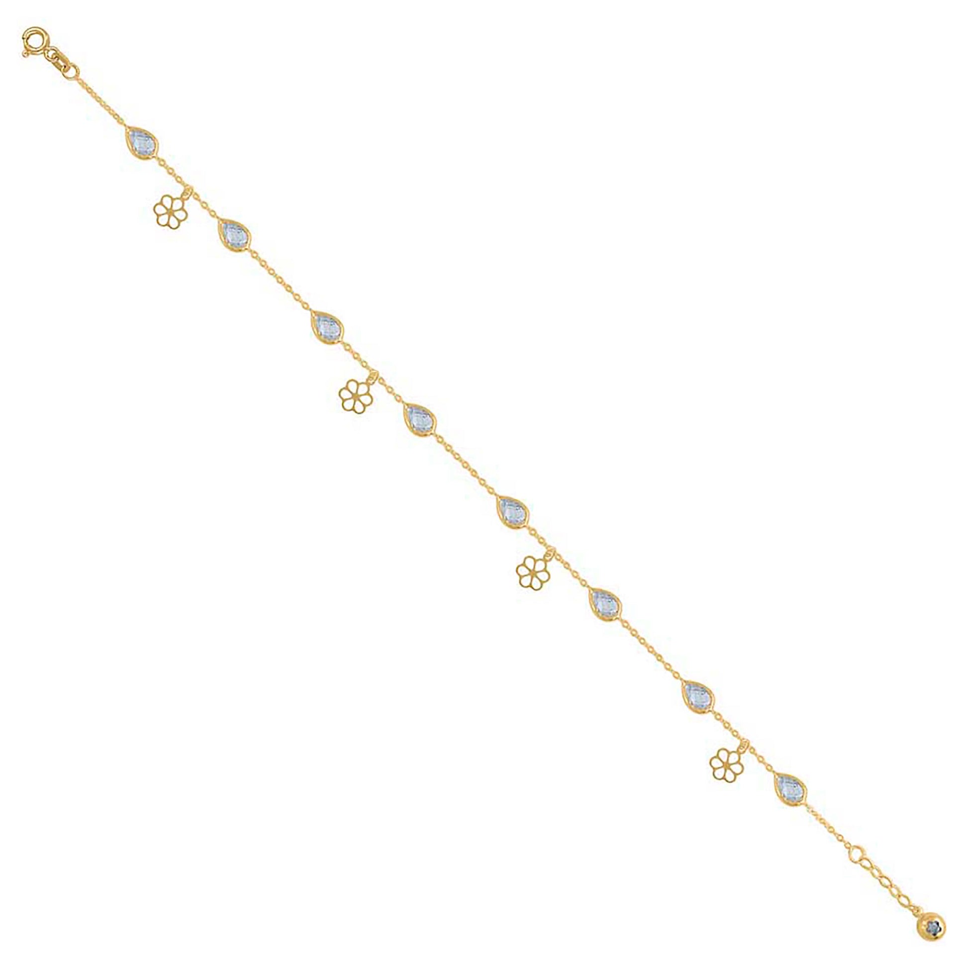 10kt Yellow Gold Womens Pear Round Cubic-Zirconia Flower Charm Anklet Size 10 Inches