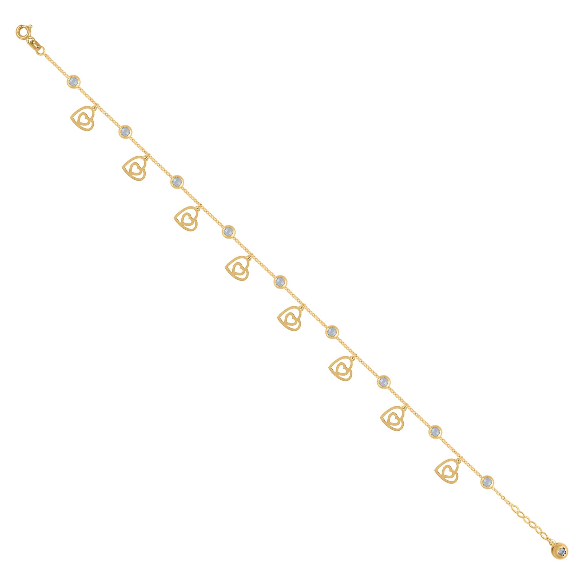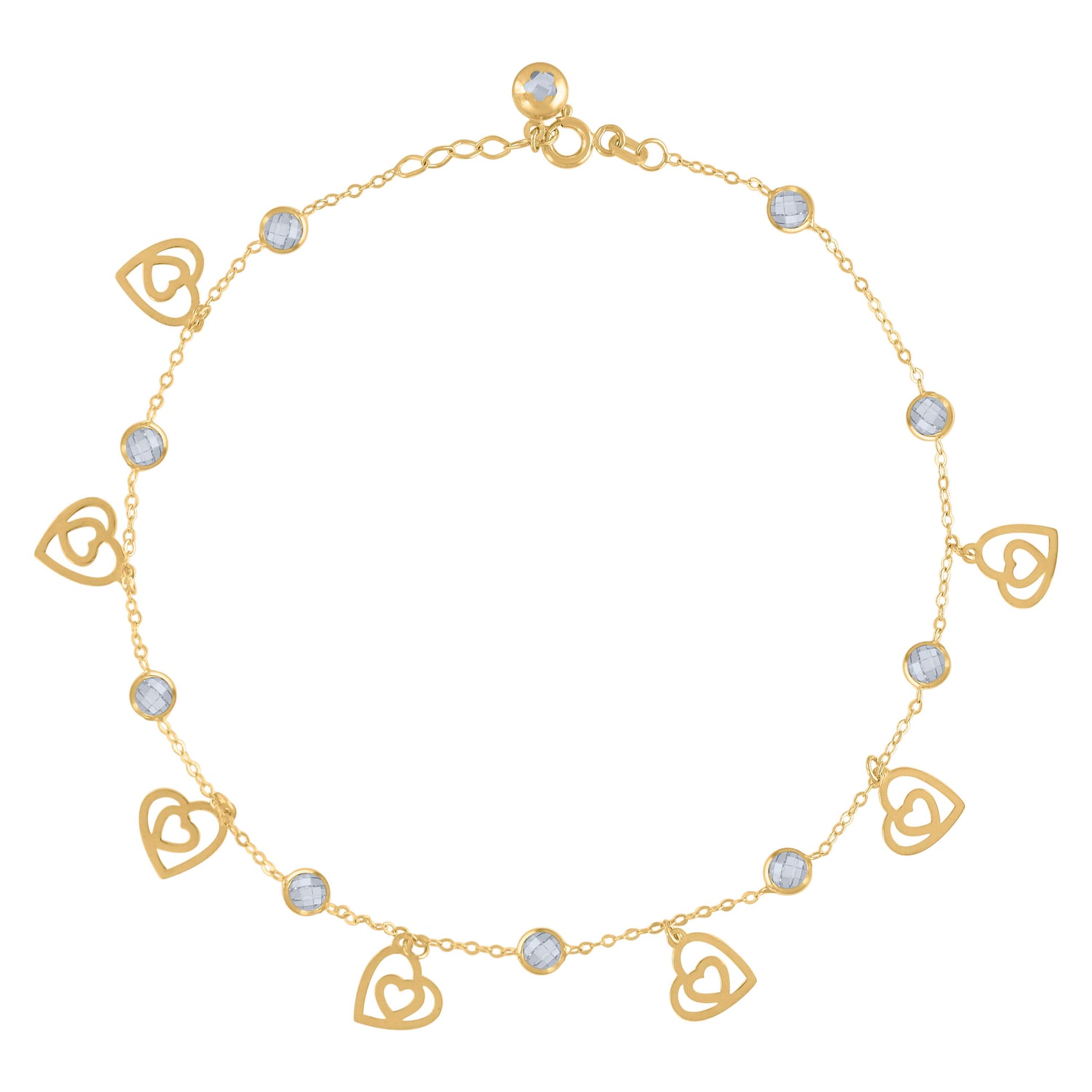 10kt Yellow Gold Womens Cubic-Zirconia Hearts Charm Anklet Size 10 Inches