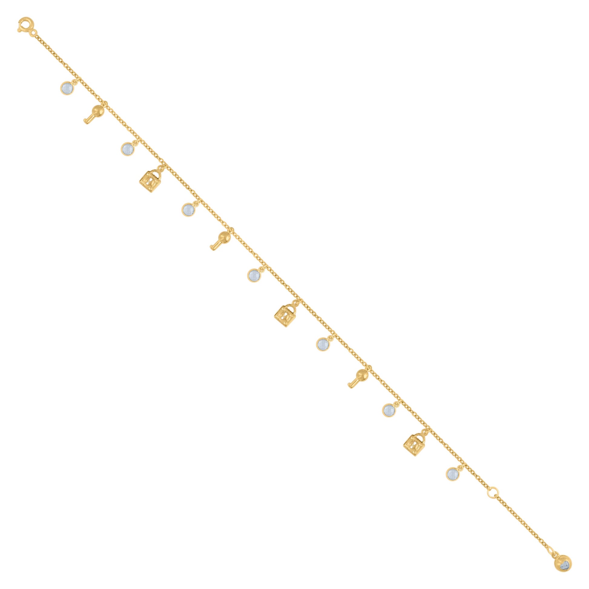 10kt Yellow Gold Womens Cubic-Zirconia Lock & Key Charm Anklet Size 10 Inches
