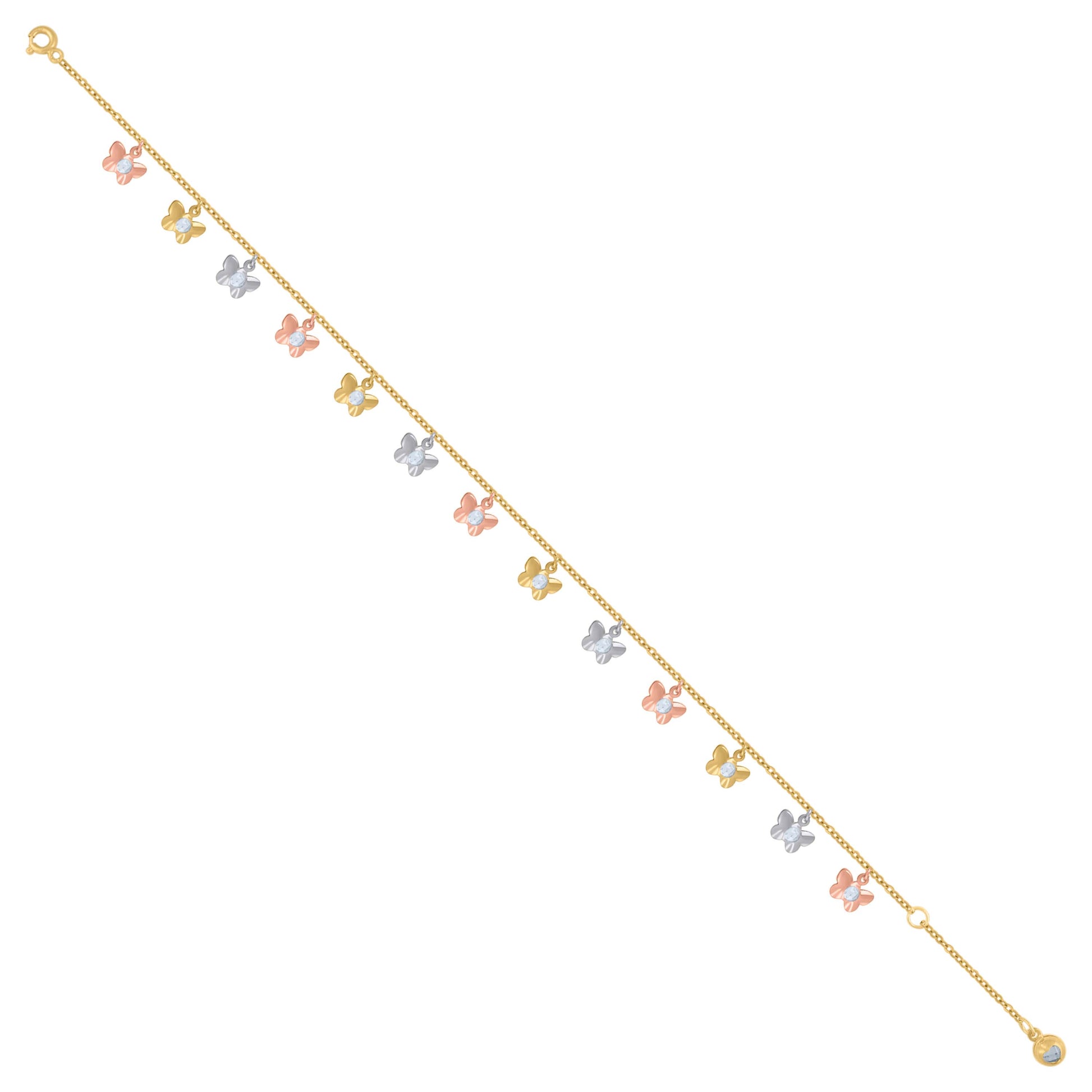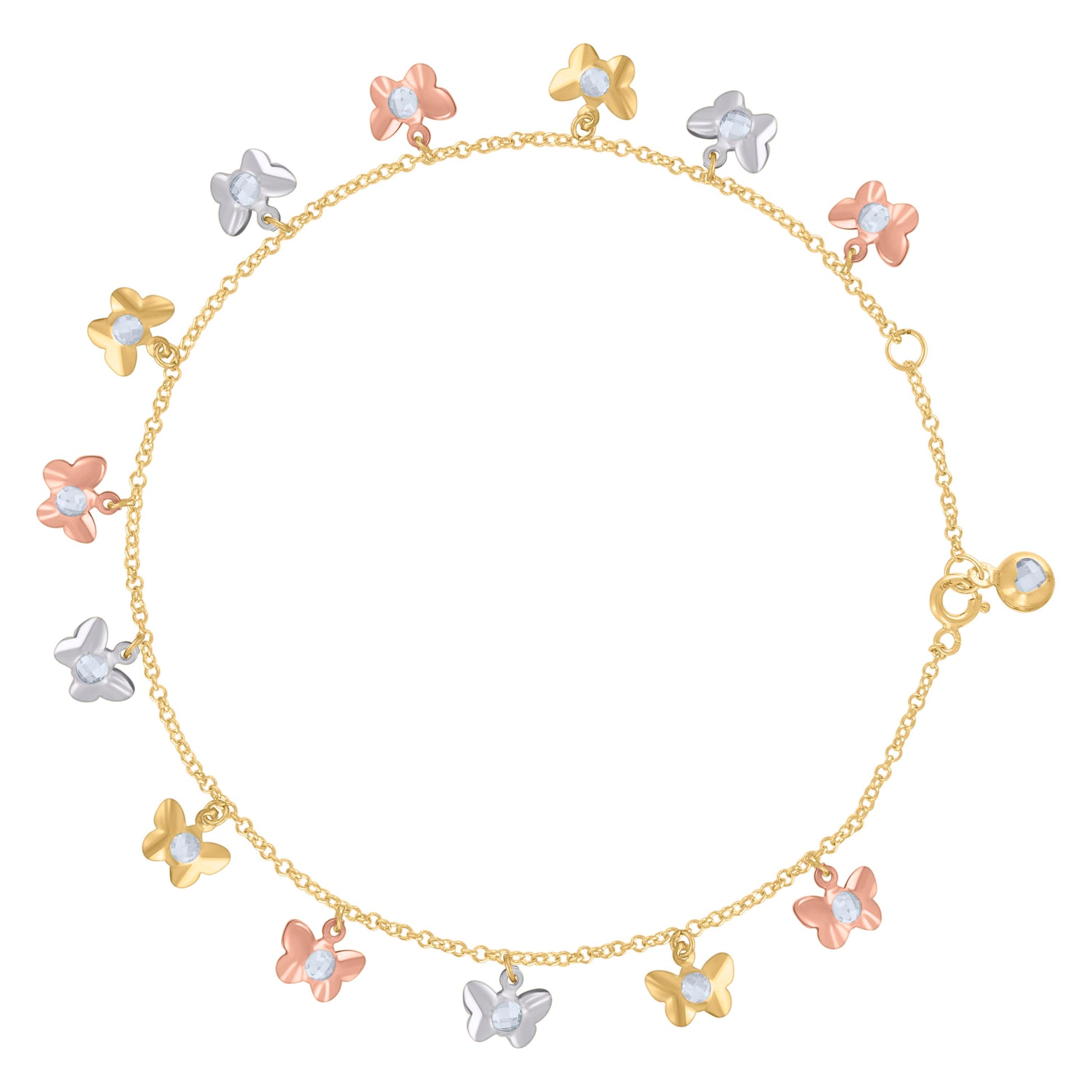 10kt Tri-Color Gold Womens Cubic-Zirconia Butterfly Charm Anklet Size 10 Inches