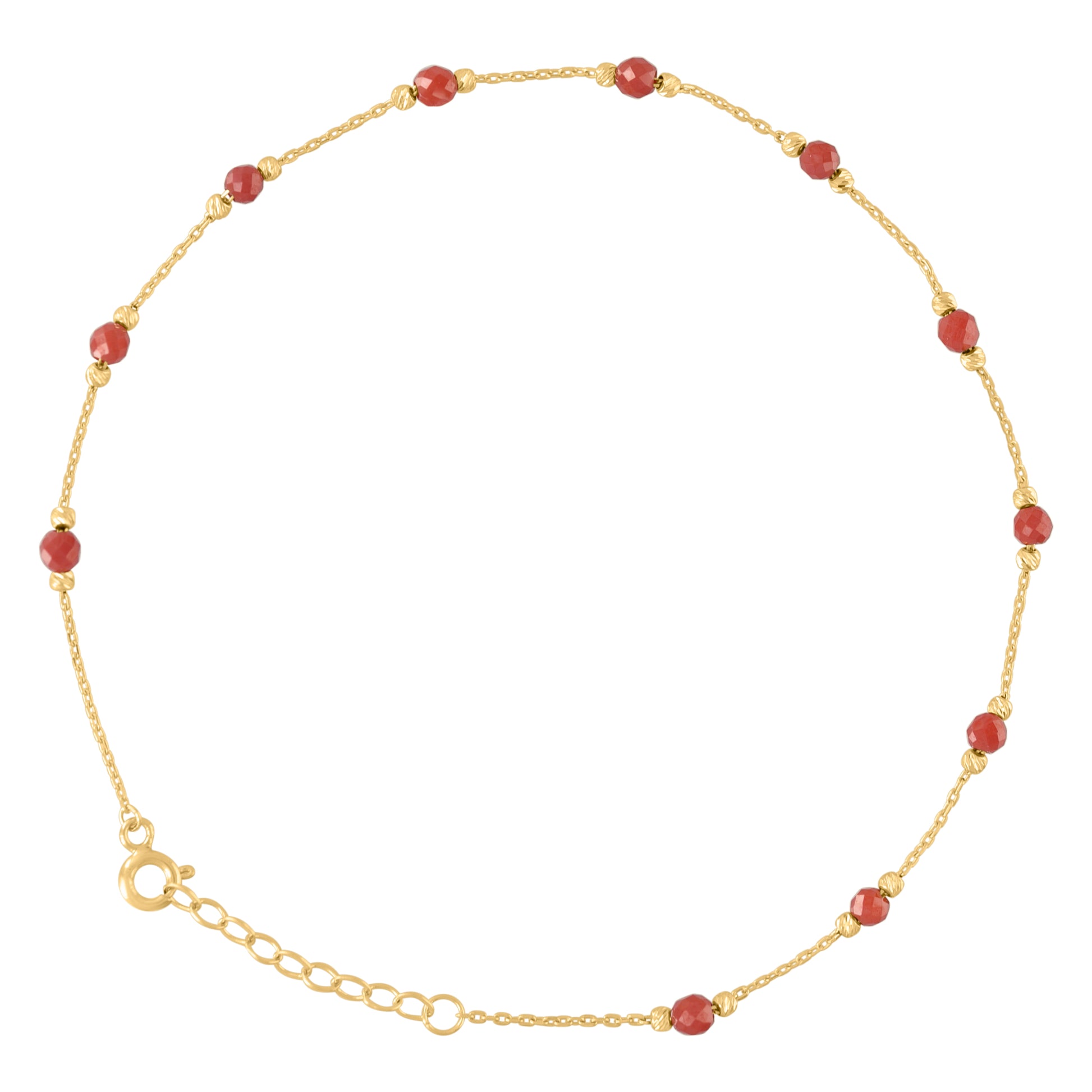 10kt Yellow Gold Womens Red Cubic-Zirconia Chain Anklet Size 10 Inches