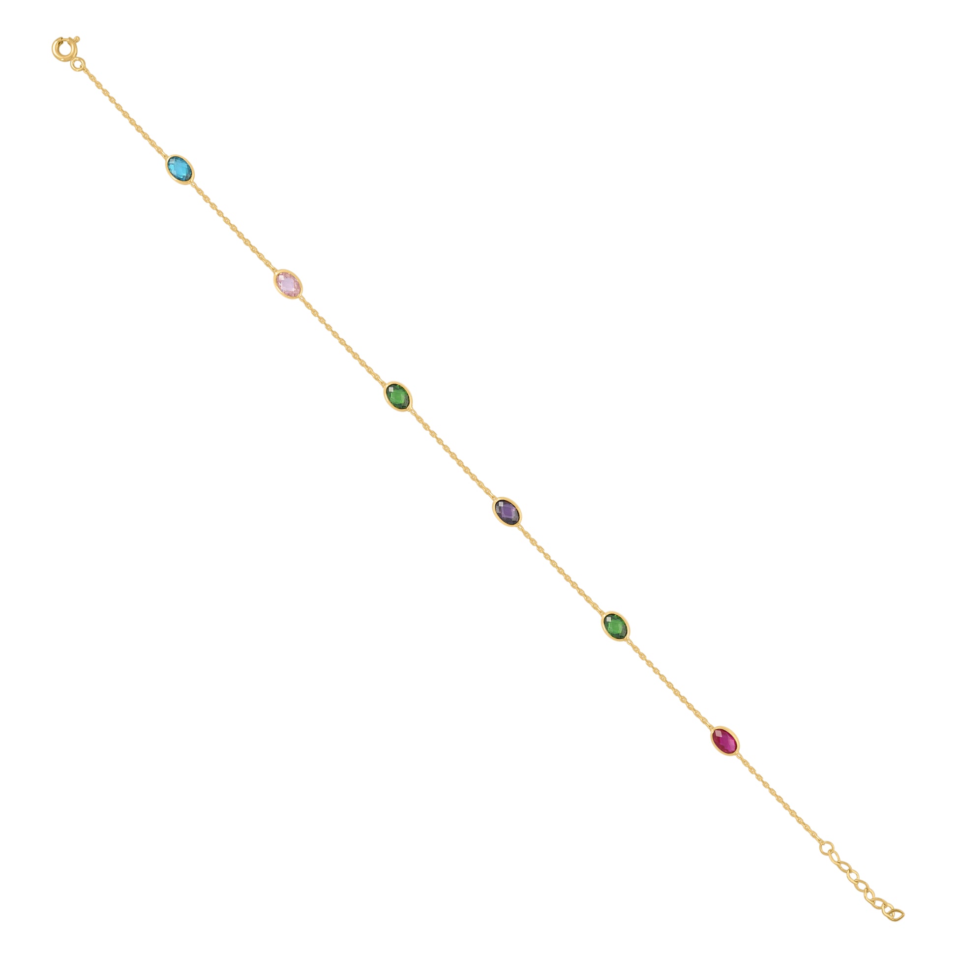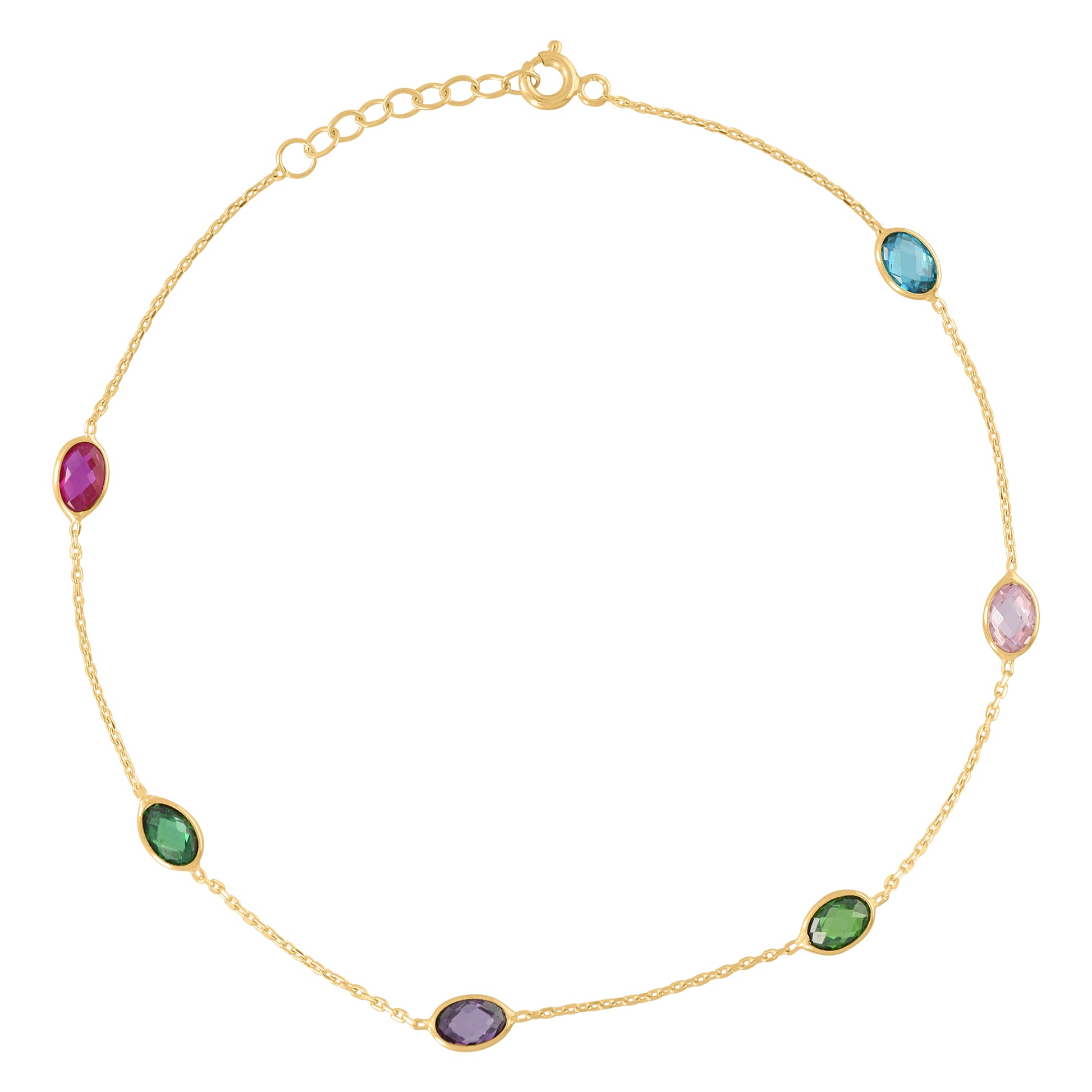 10kt Yellow Gold Womens Multi-Color Oval Cubic-Zirconia Chain Anklet Size 10 Inches