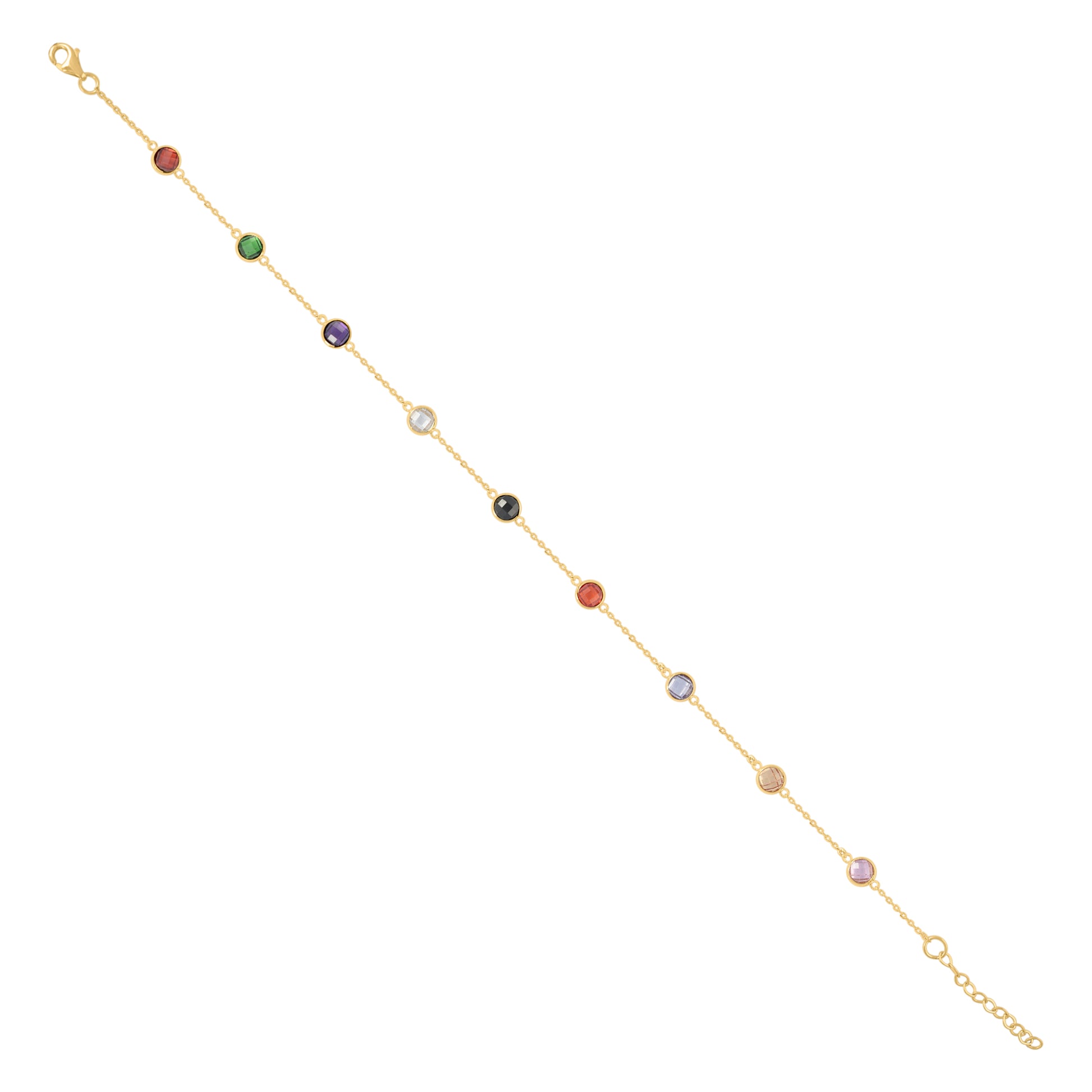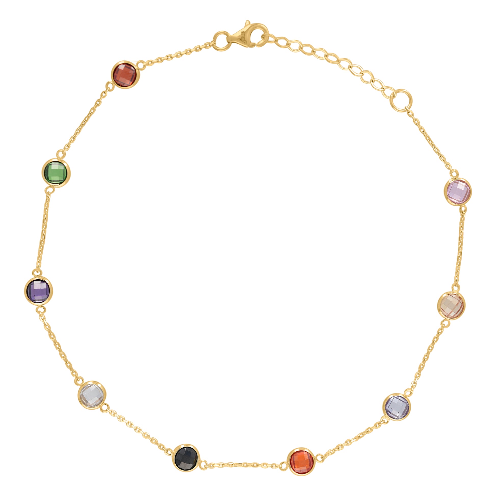 10kt Yellow Gold Womens Multi-Color Cubic-Zirconia Chain Anklet Size 10 Inches