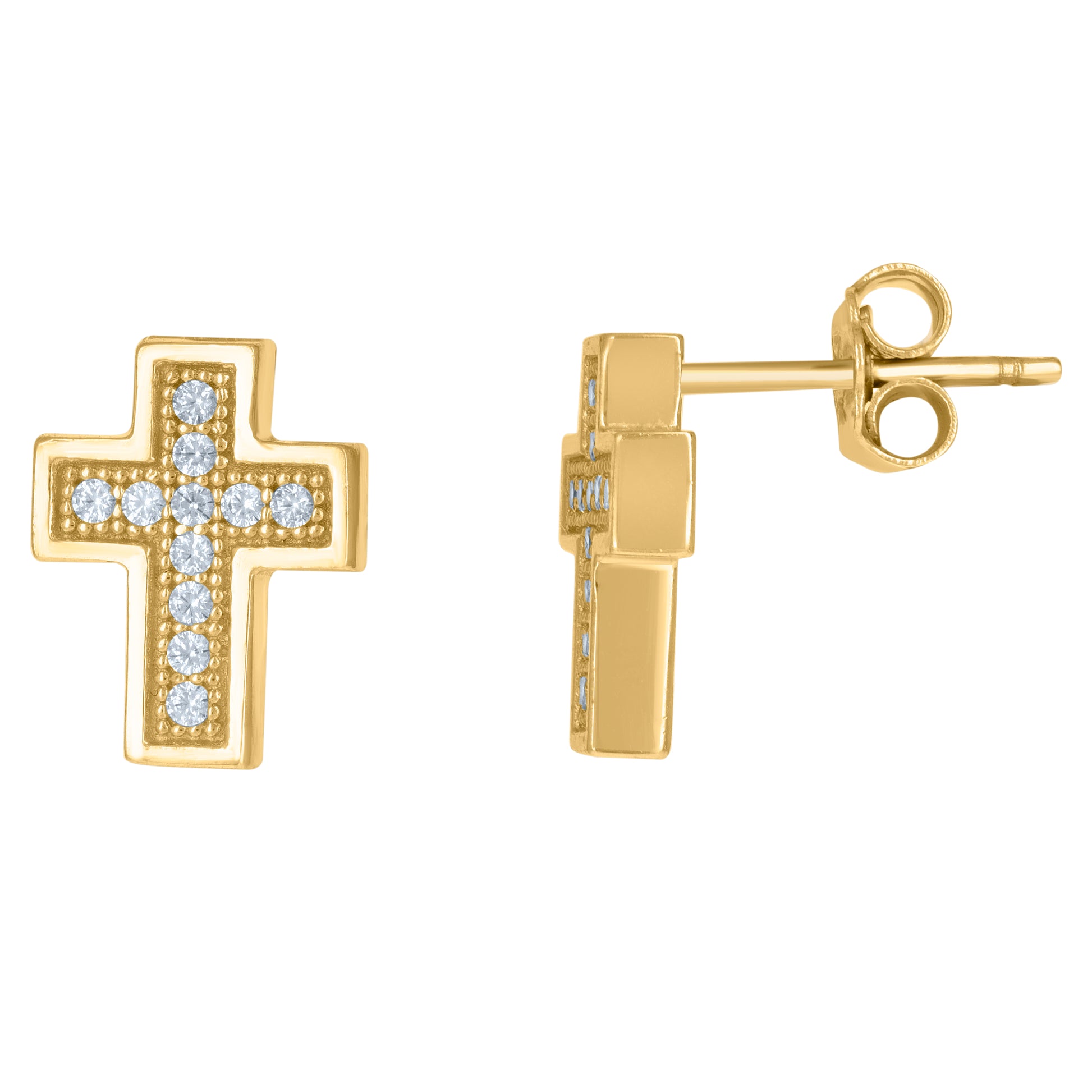 10kt Two-Tone Gold Mens Cubic Zirconia CZ Cross Religious Stud Earrings