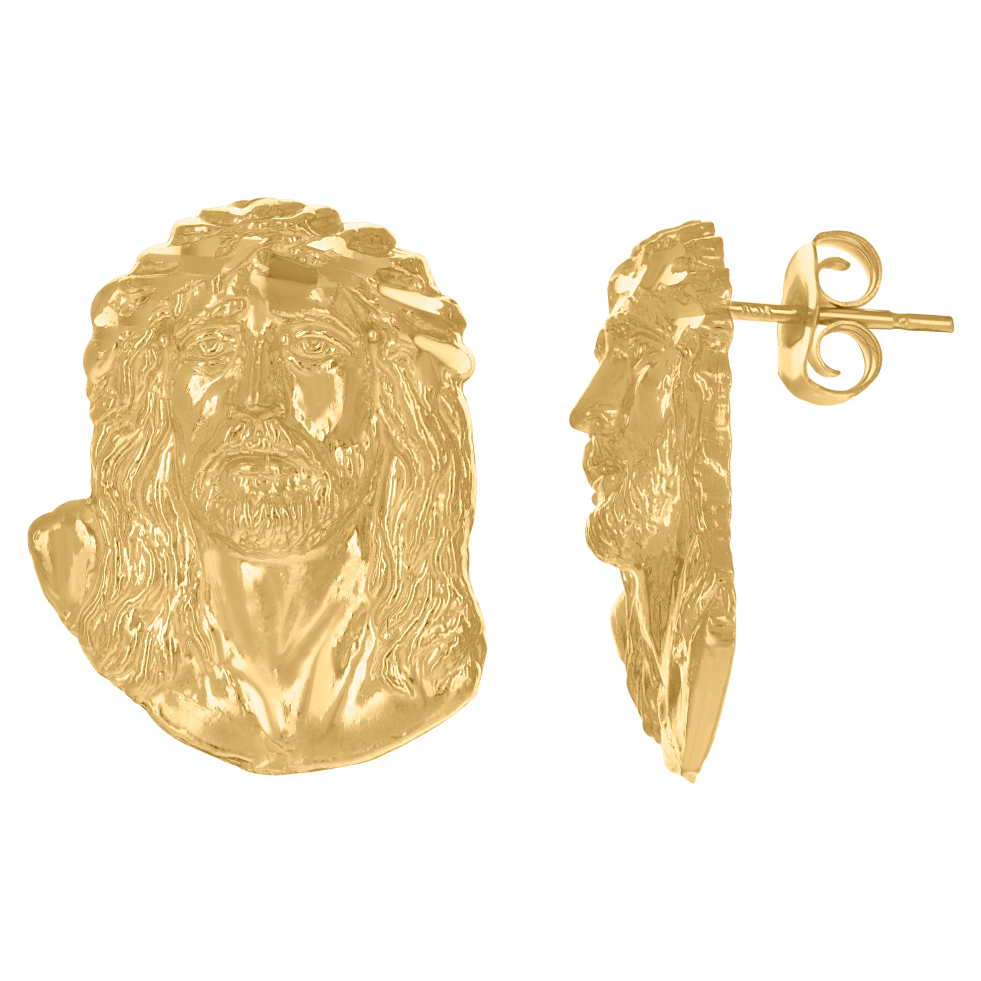 10kt Yellow Gold Mens Religious Jesus Stud Earrings