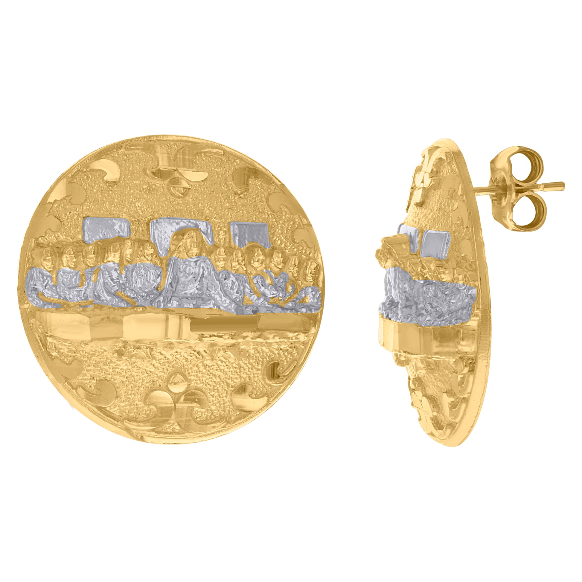 10kt Two-Tone Gold Mens Religious Last Supper Stud Earrings