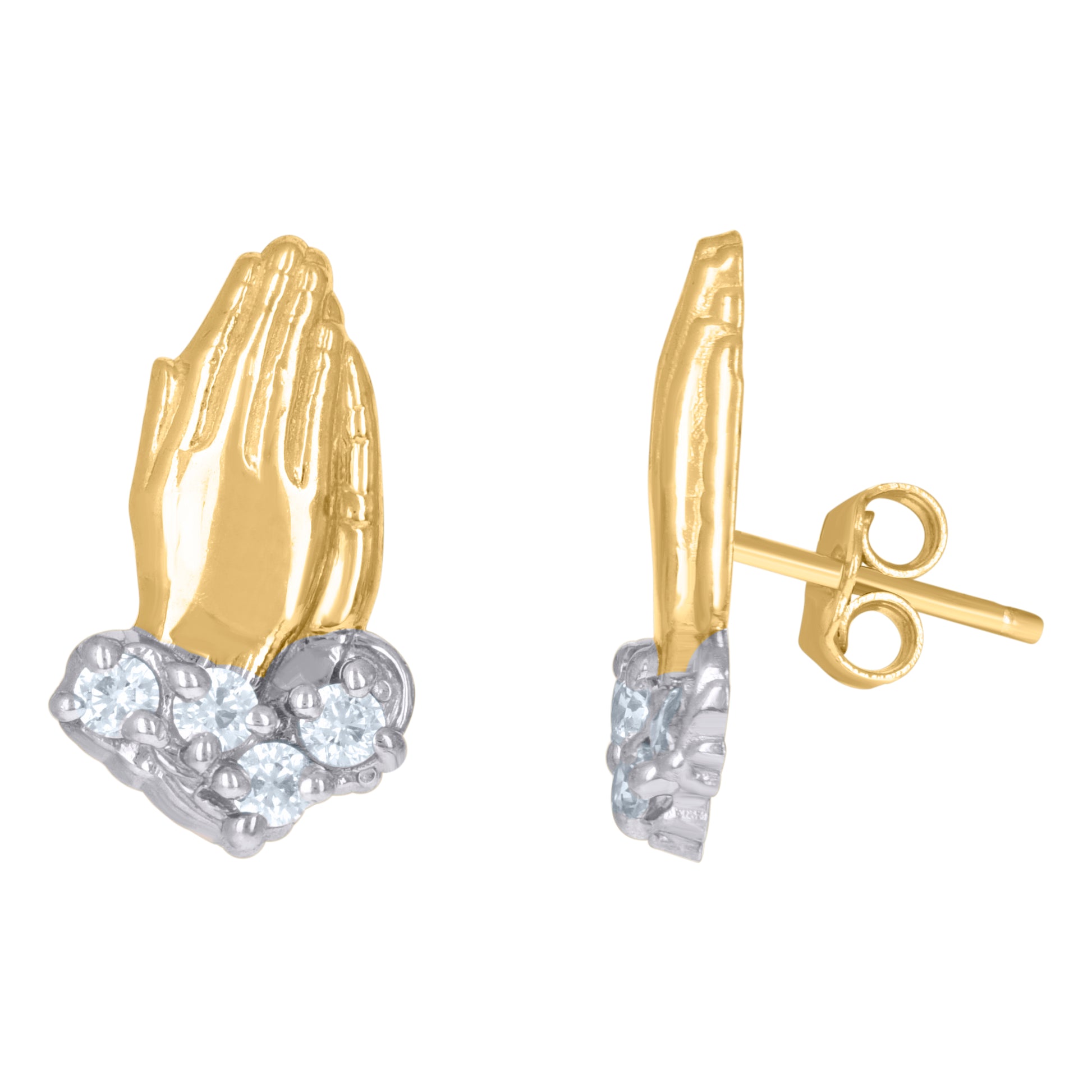 10kt Tri-Color Gold Mens Praying Hands Religious Stud Earrings