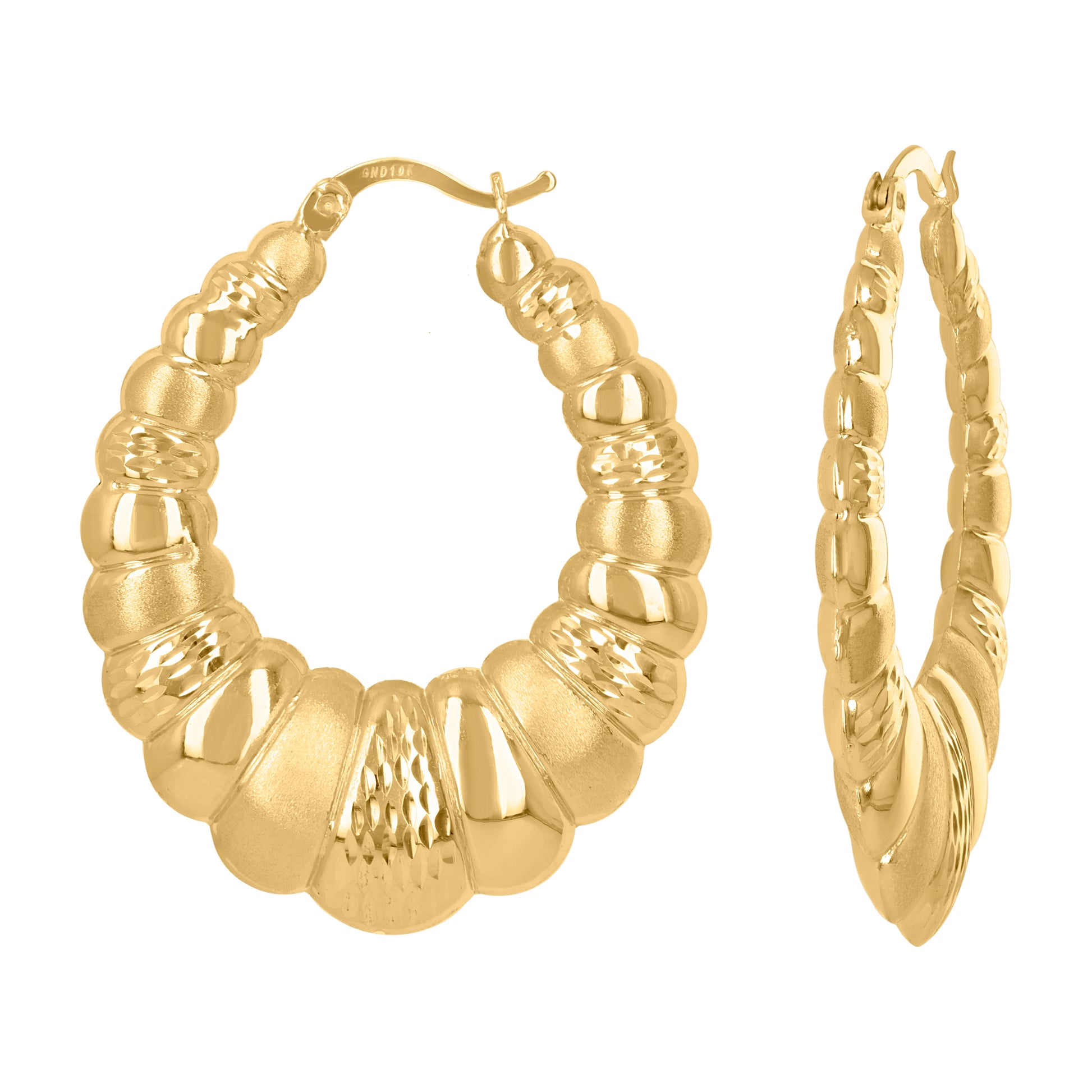 10kt Yellow Gold Brushed Womens Scalloped 36.4mm Hinged Hoops Huggies