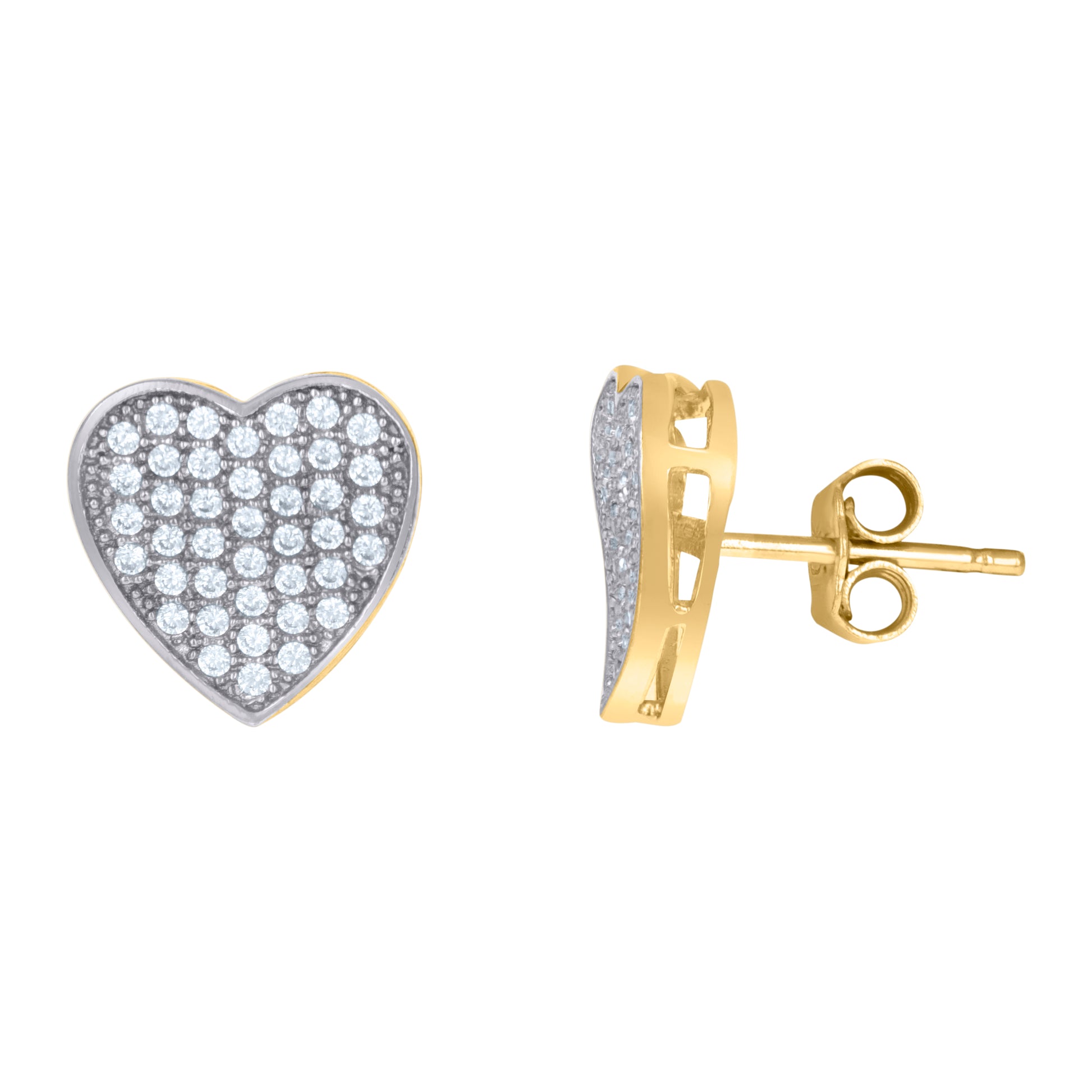10kt Two-Tone Gold Womens CZ Cubic Zirconia Heart Cluster Stud Earrings