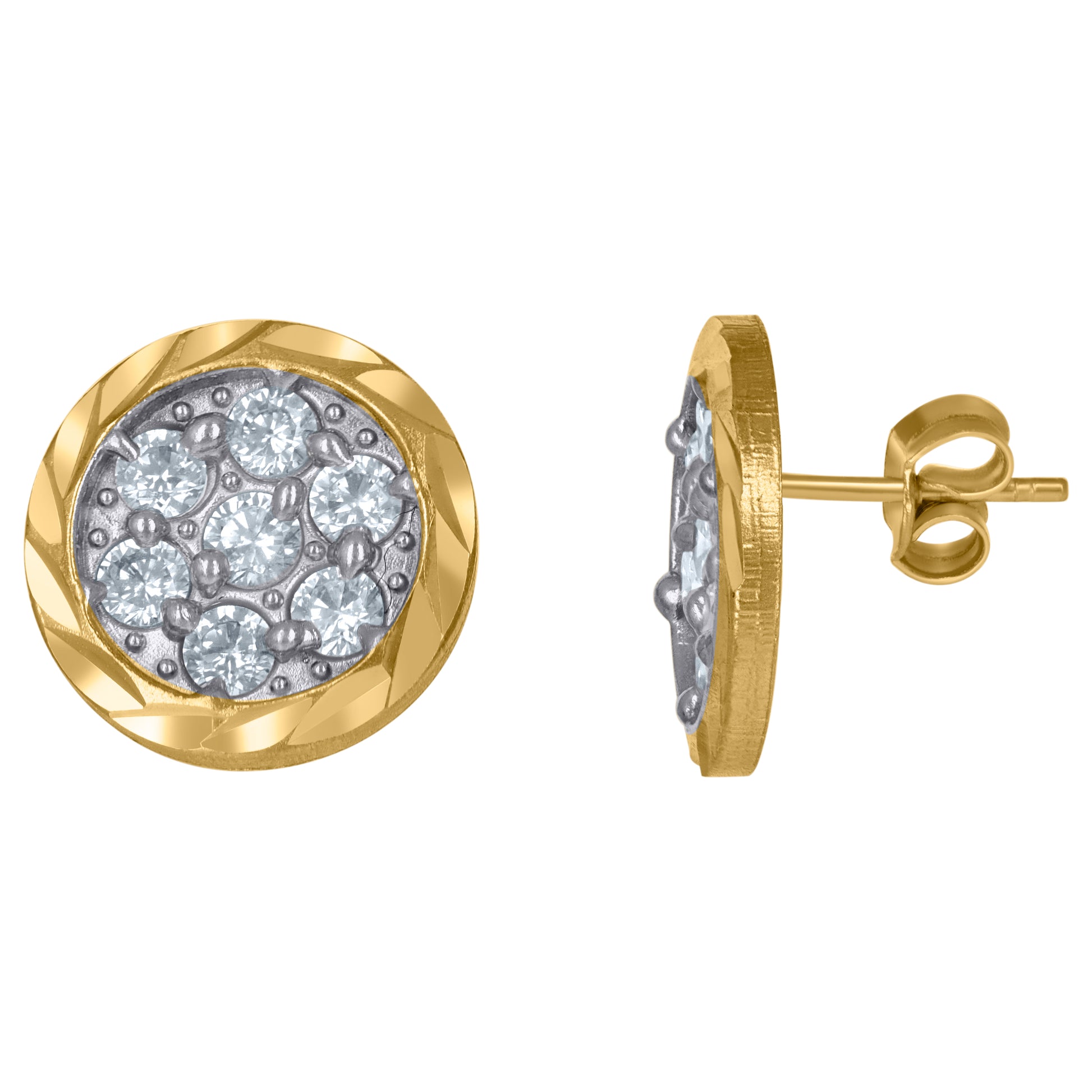 10kt Gold Two-Tone CZ Mens Dc Round 14.1mm Push Back Studs