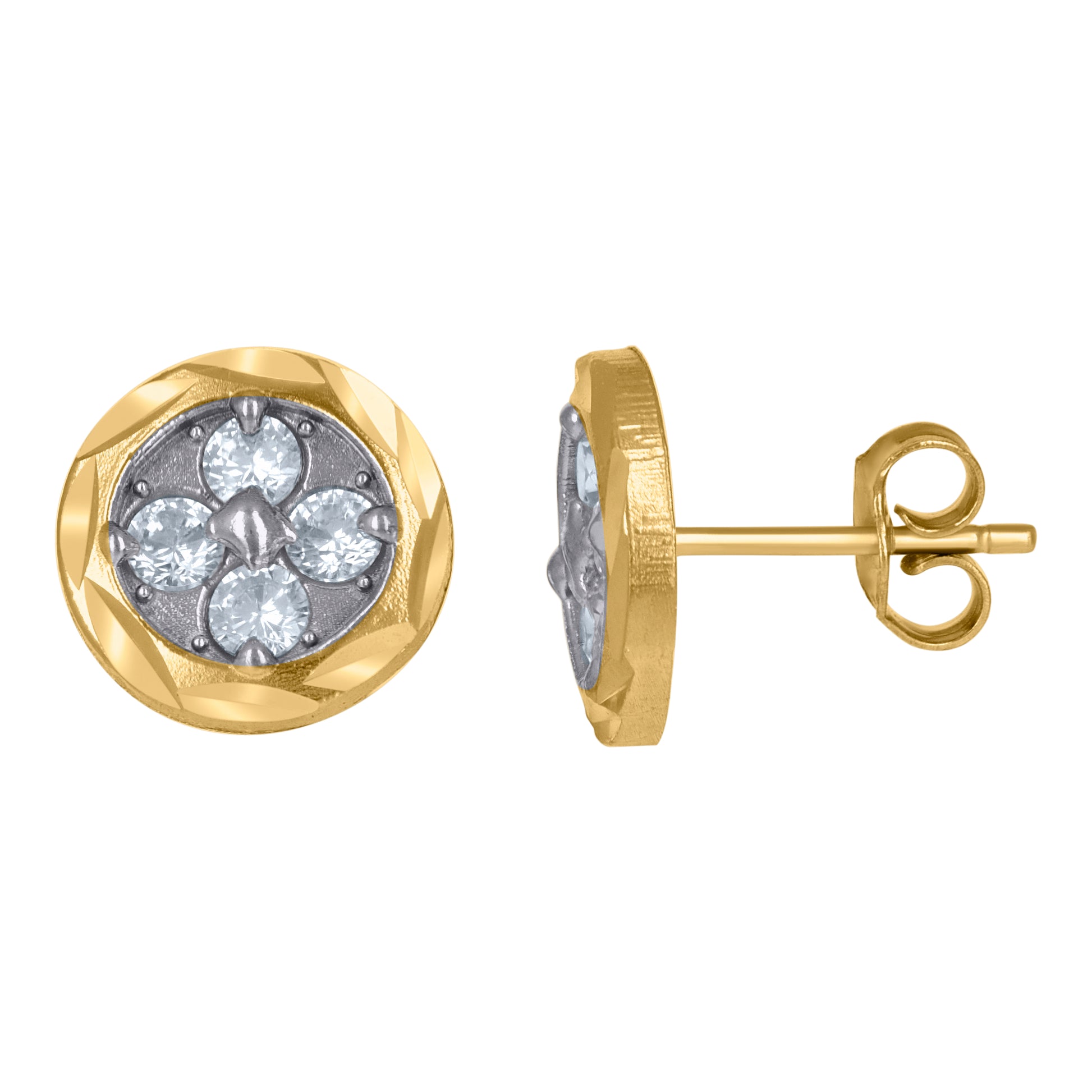 10kt Two-Tone Gold Mens Cubic Zirconia CZ Round Diamond-Cut Cluster Stud Earrings
