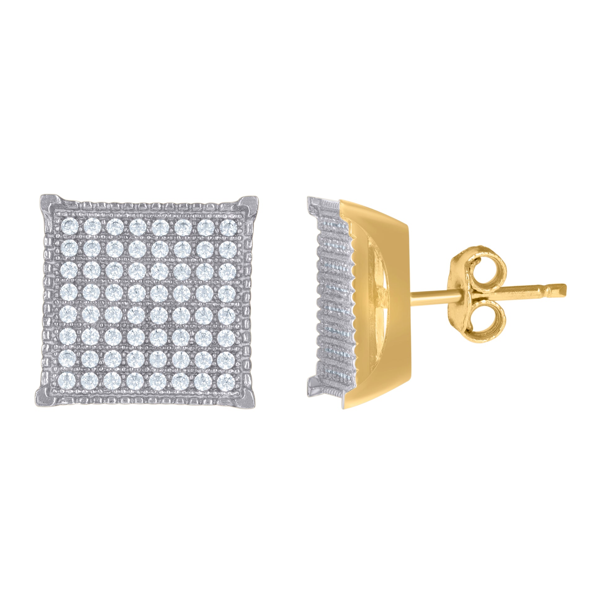 10kt Two-Tone Gold Womens CZ Cubic Zirconia Square Cluster Stud Earrings