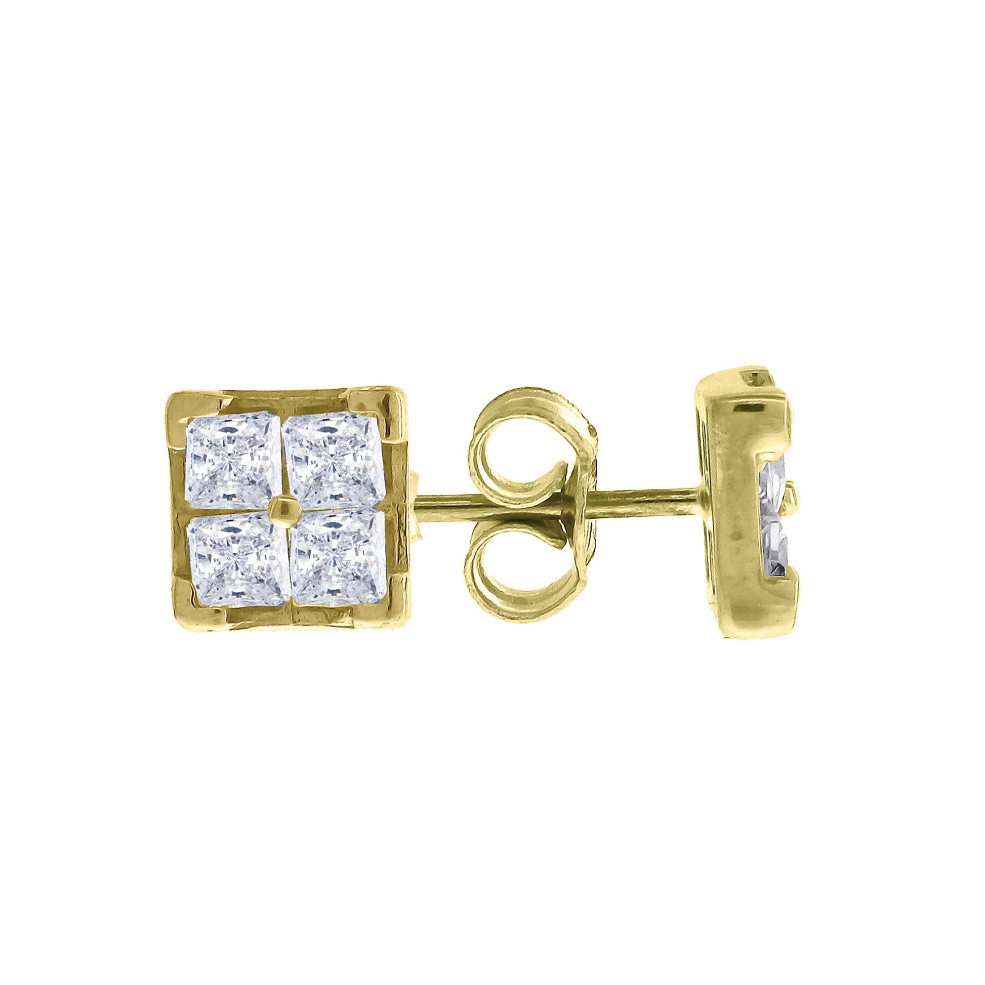 10kt Yellow Gold Mens Princess Cut CZ Cubic Zirconia Square Stud Earrings