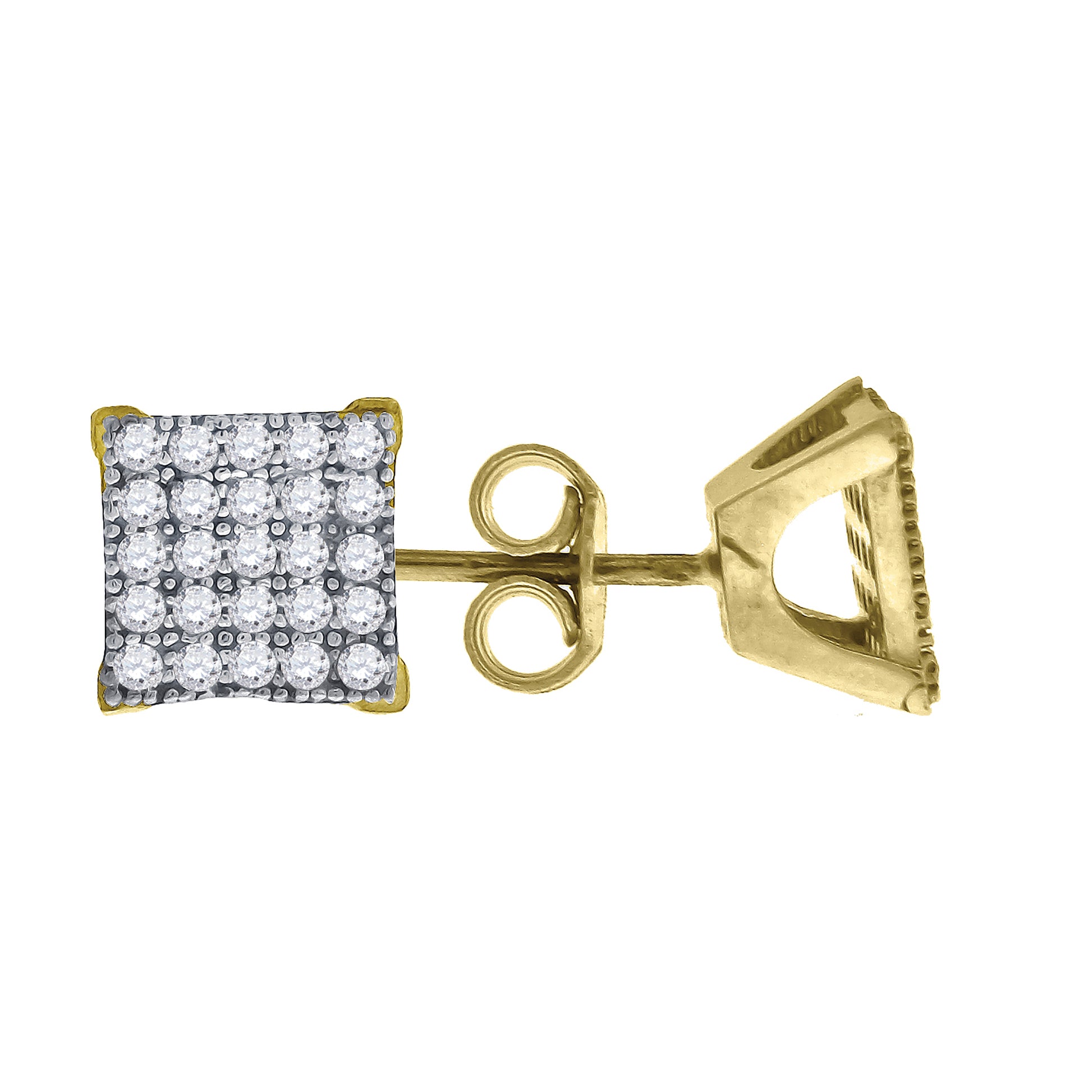 10kt Gold Two-Tone CZ Mens Square 7.1mm X 7.1mm Push Back Studs
