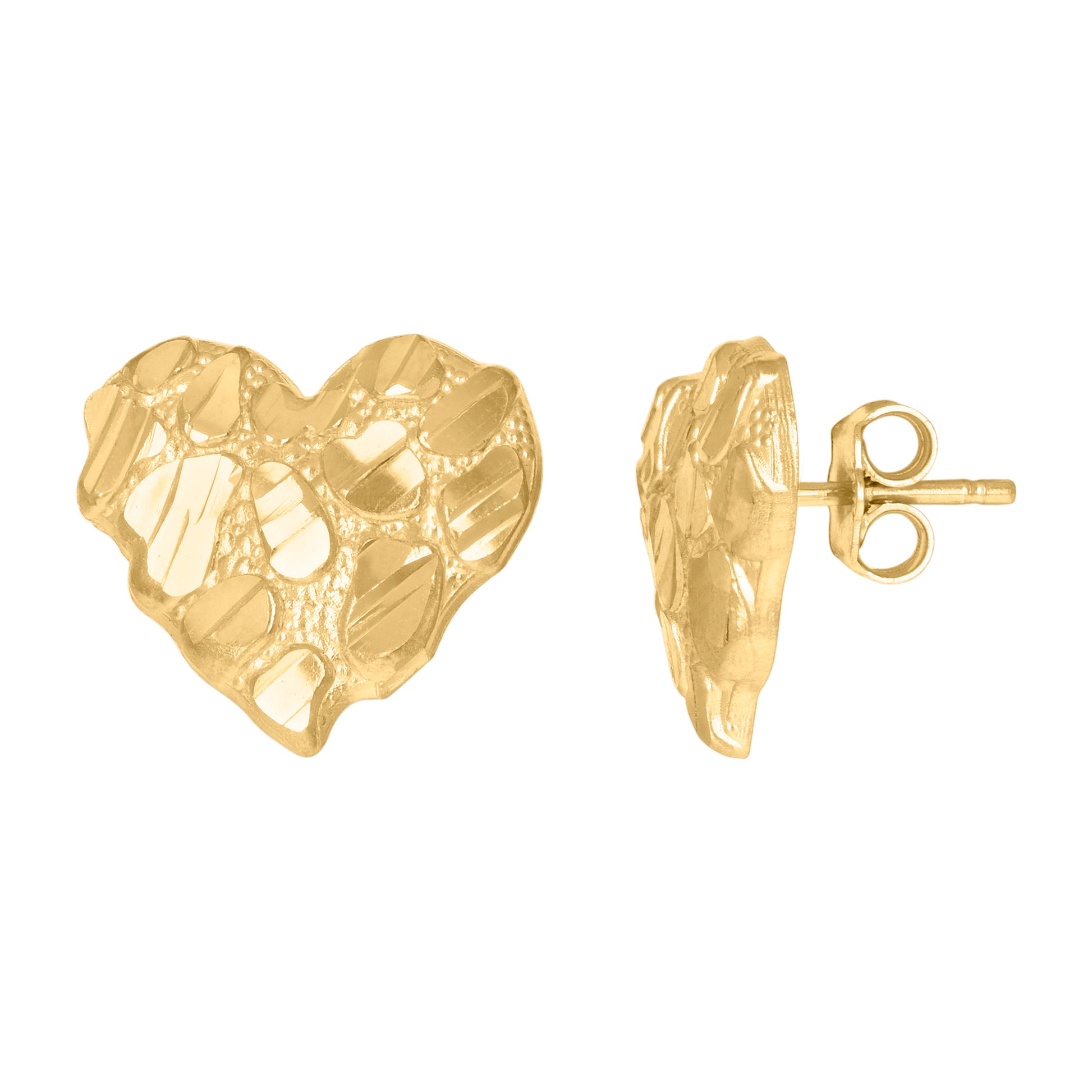 10kt Yellow Gold Womens Nugget Heart Stud Earrings