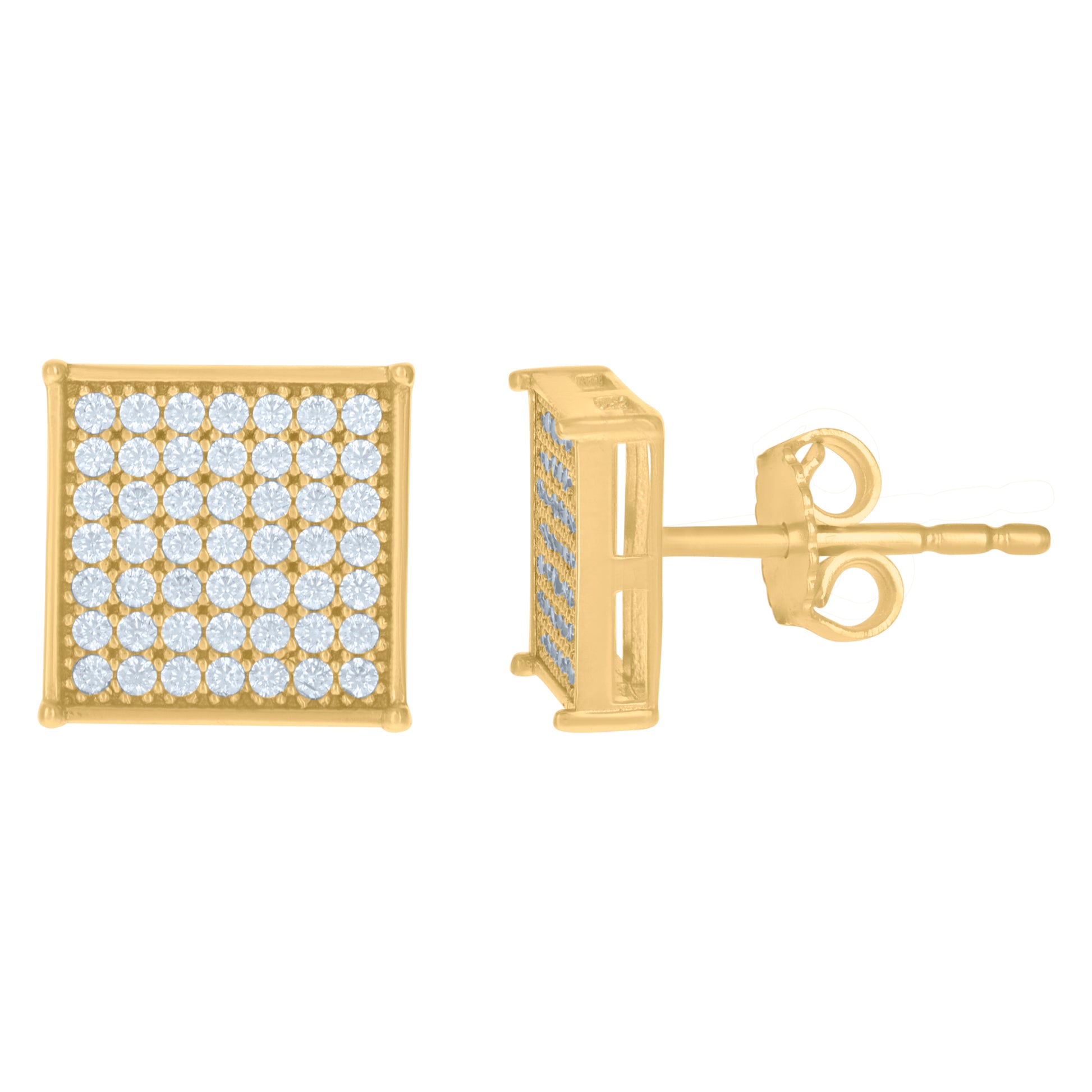 10kt Yellow Gold Mens Cubic-Zirconia Square Stud Earrings