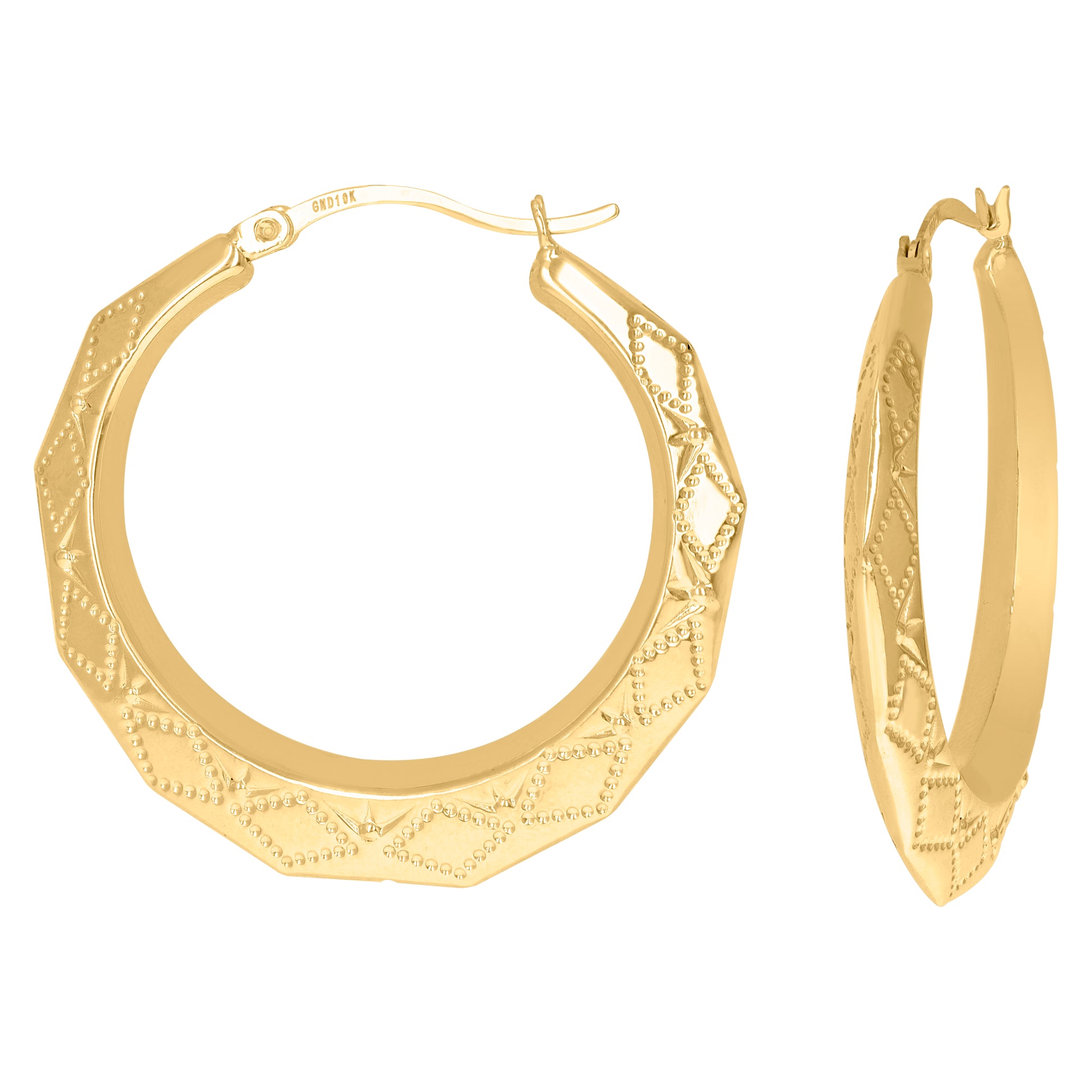 10kt Yellow Gold Dc Womens Embossed 40mm Hinged Hoops Huggies