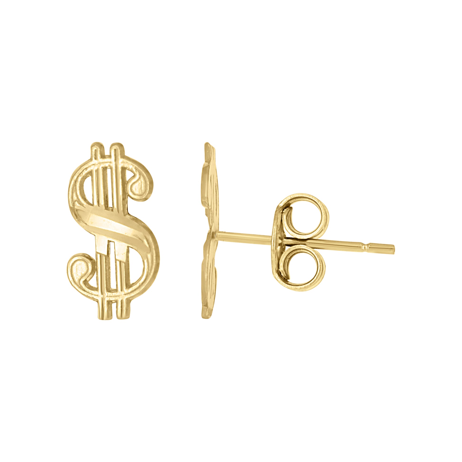 10kt Yellow Gold Mens Gambling Dollar Sign Stud Earrings