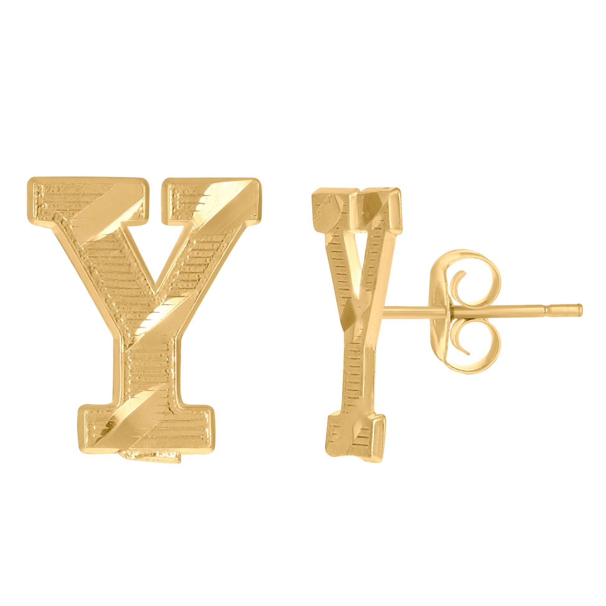 10kt Yellow Gold Mens Initials Letter Y Stud Earrings