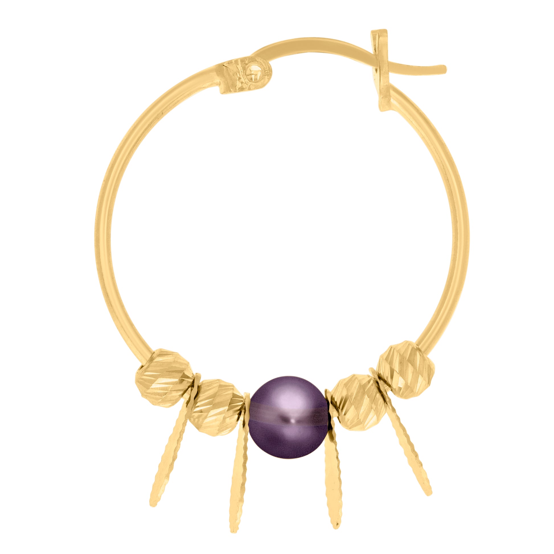 10kt Yellow Gold Womens Purple Beaded Fashion Hoop Earrings