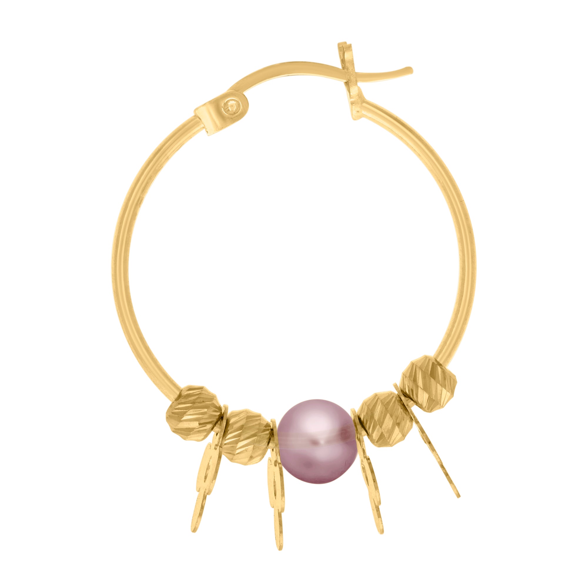 10kt Yellow Gold Womens Pink Beaded Fashion Hoop Earrings