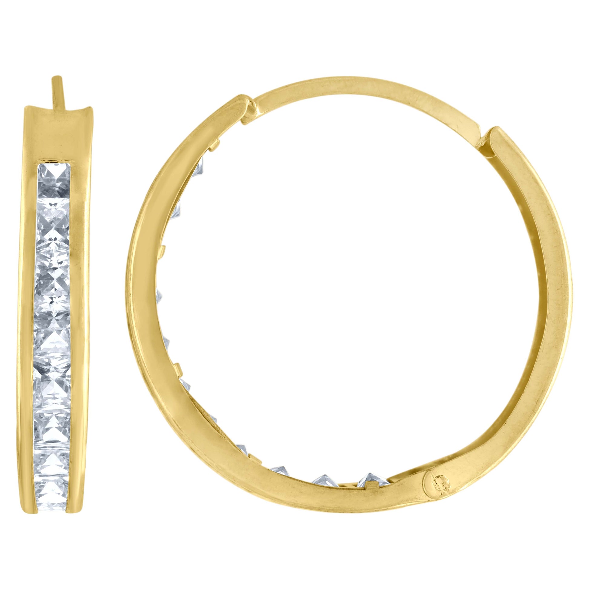 10kt Yellow Gold Womens Princess-Cut Cubic Zirconia Huggie Hoop Earrings