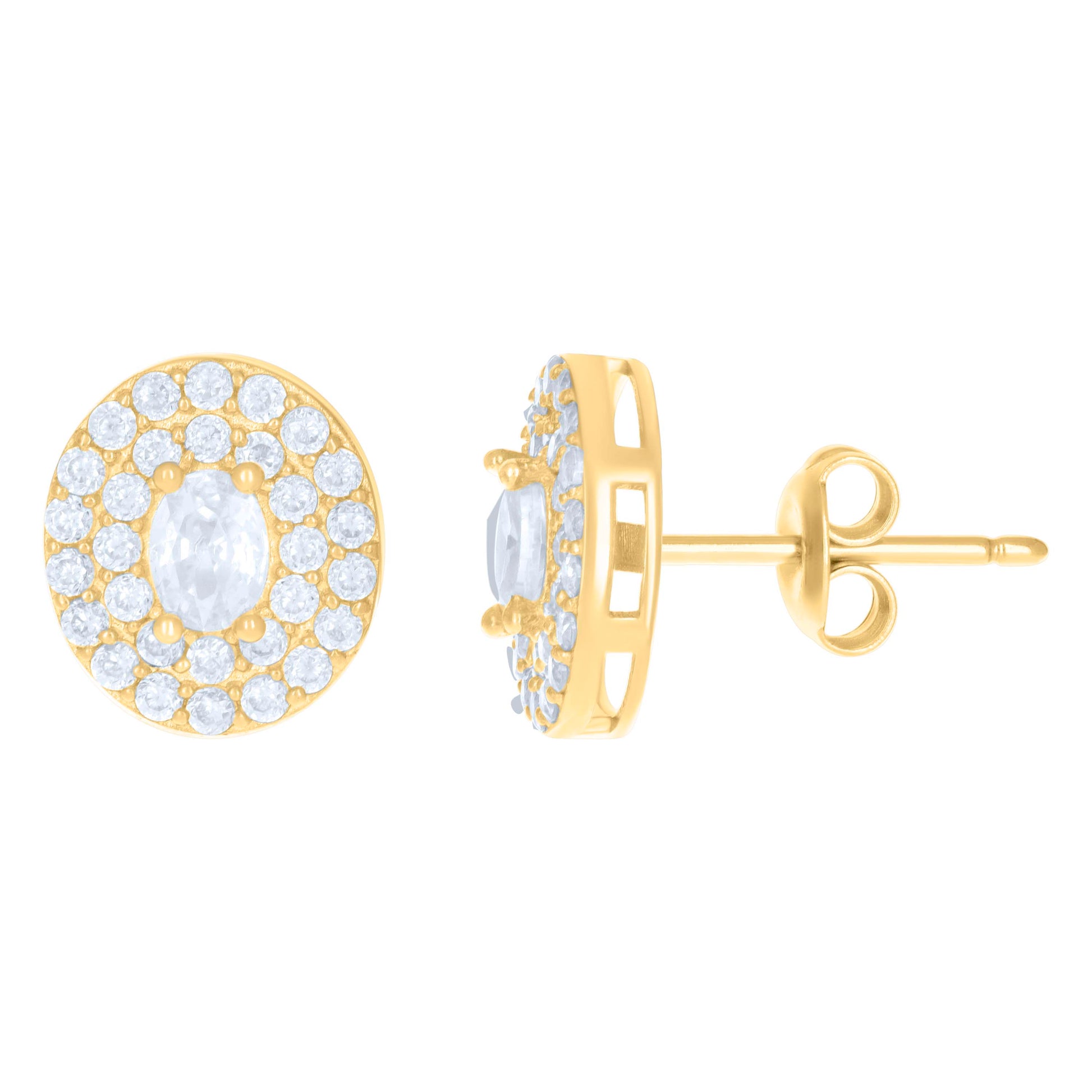 10kt Yellow Gold Womens Oval Round Cubic-Zirconia Fashion Stud Earrings