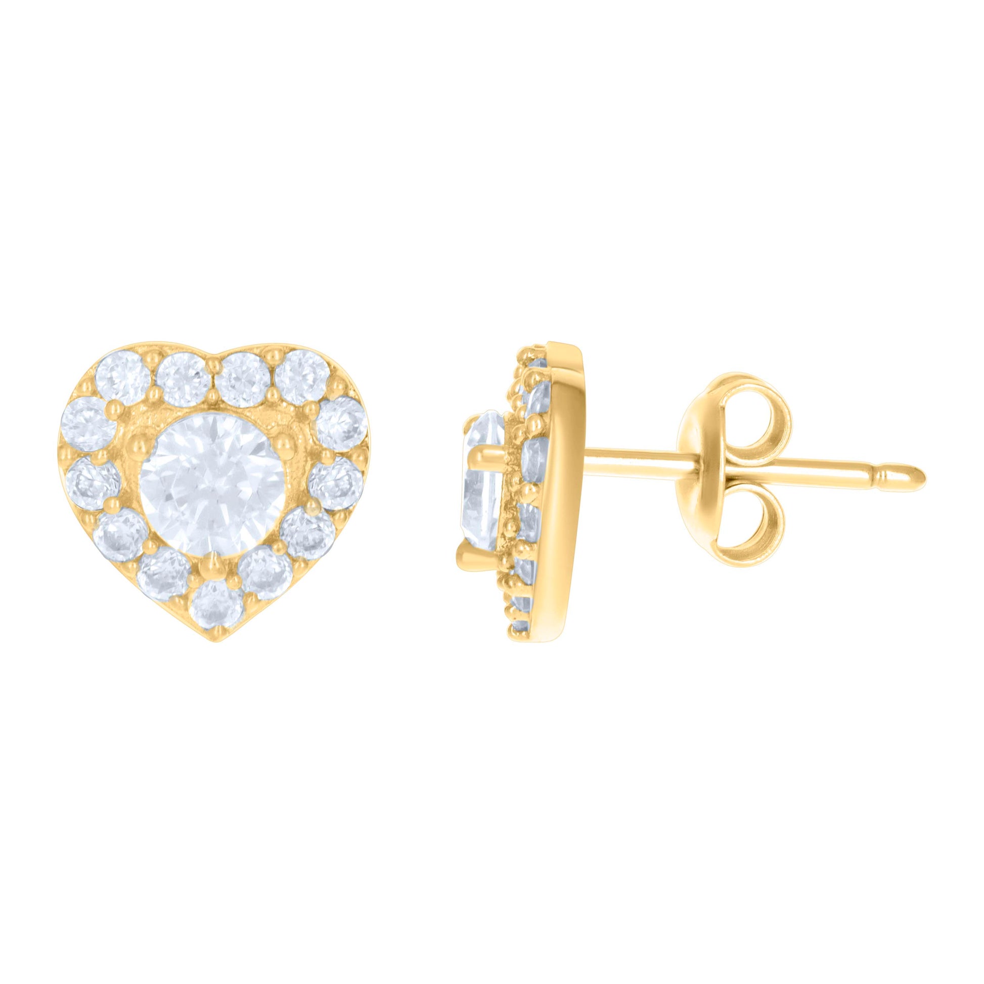 10kt Yellow Gold Womens Cubic-Zirconia Heart Stud Earrings