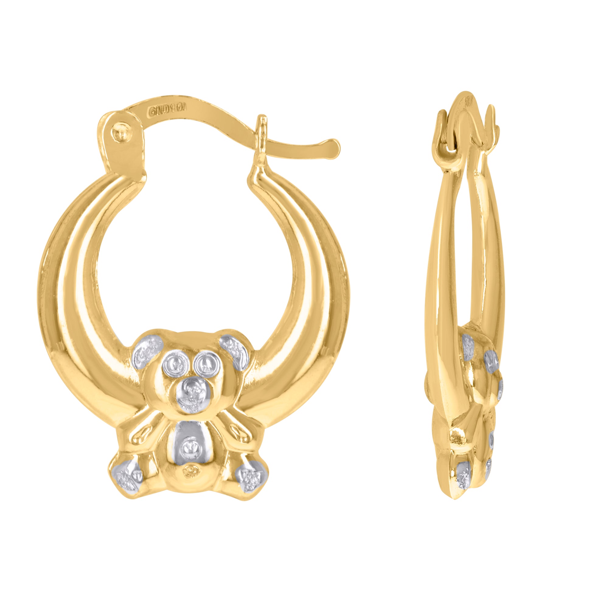 10kt Two-Tone Gold Womens Teddy Bear Hoop Earrings