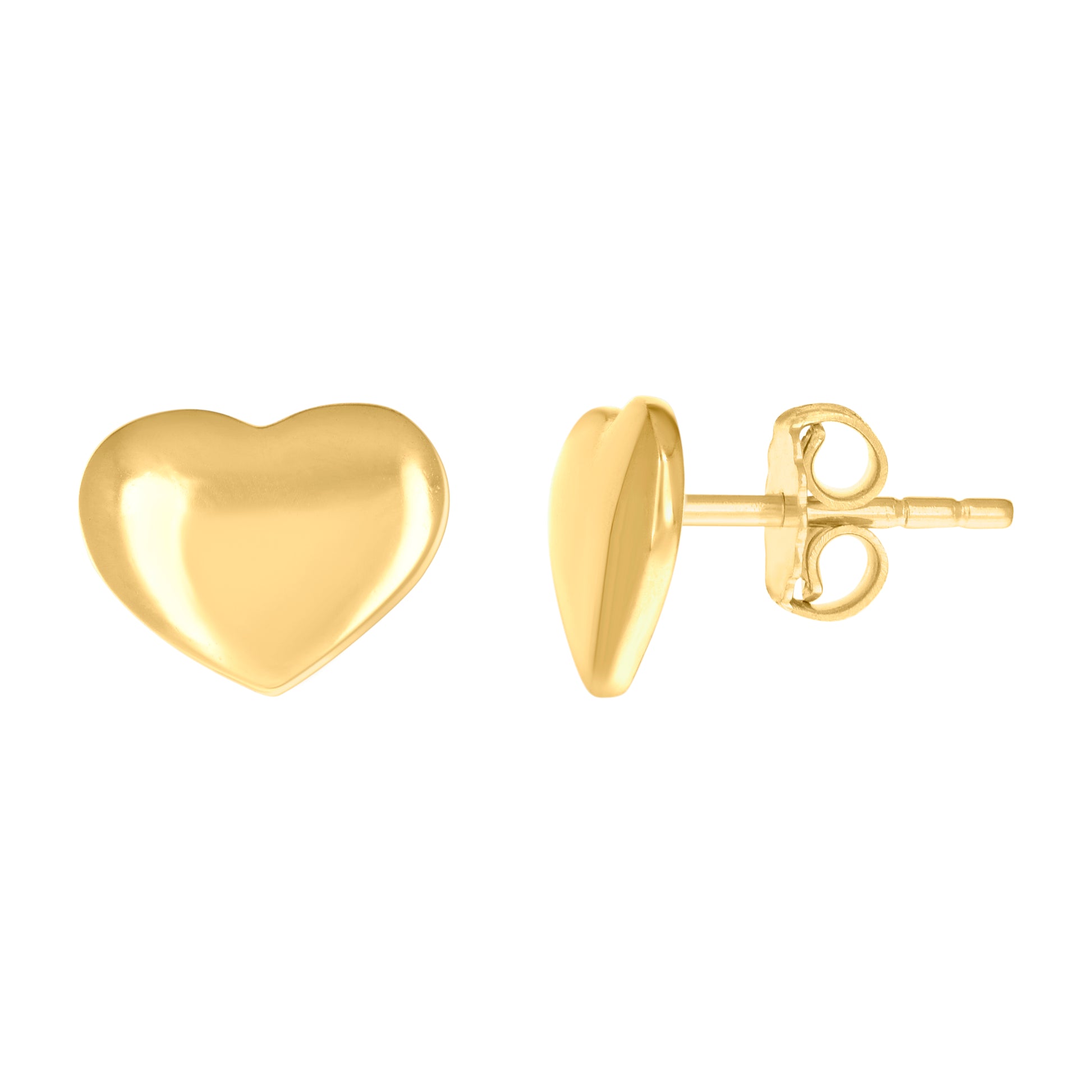 10kt Yellow Gold Womens Puffed Heart Stud Earrings
