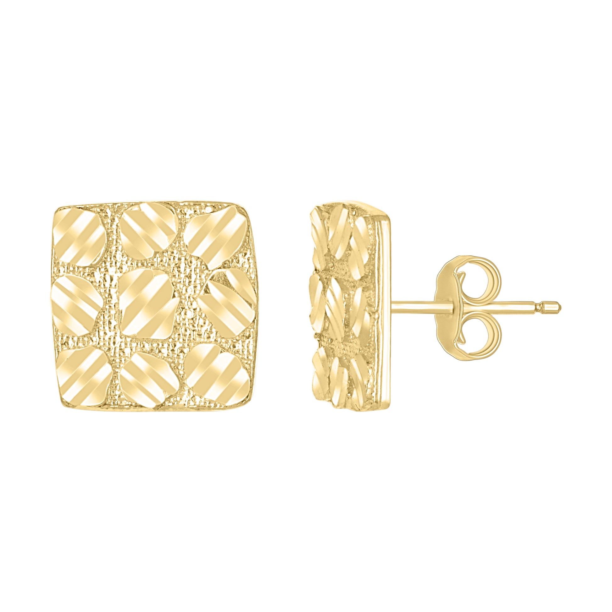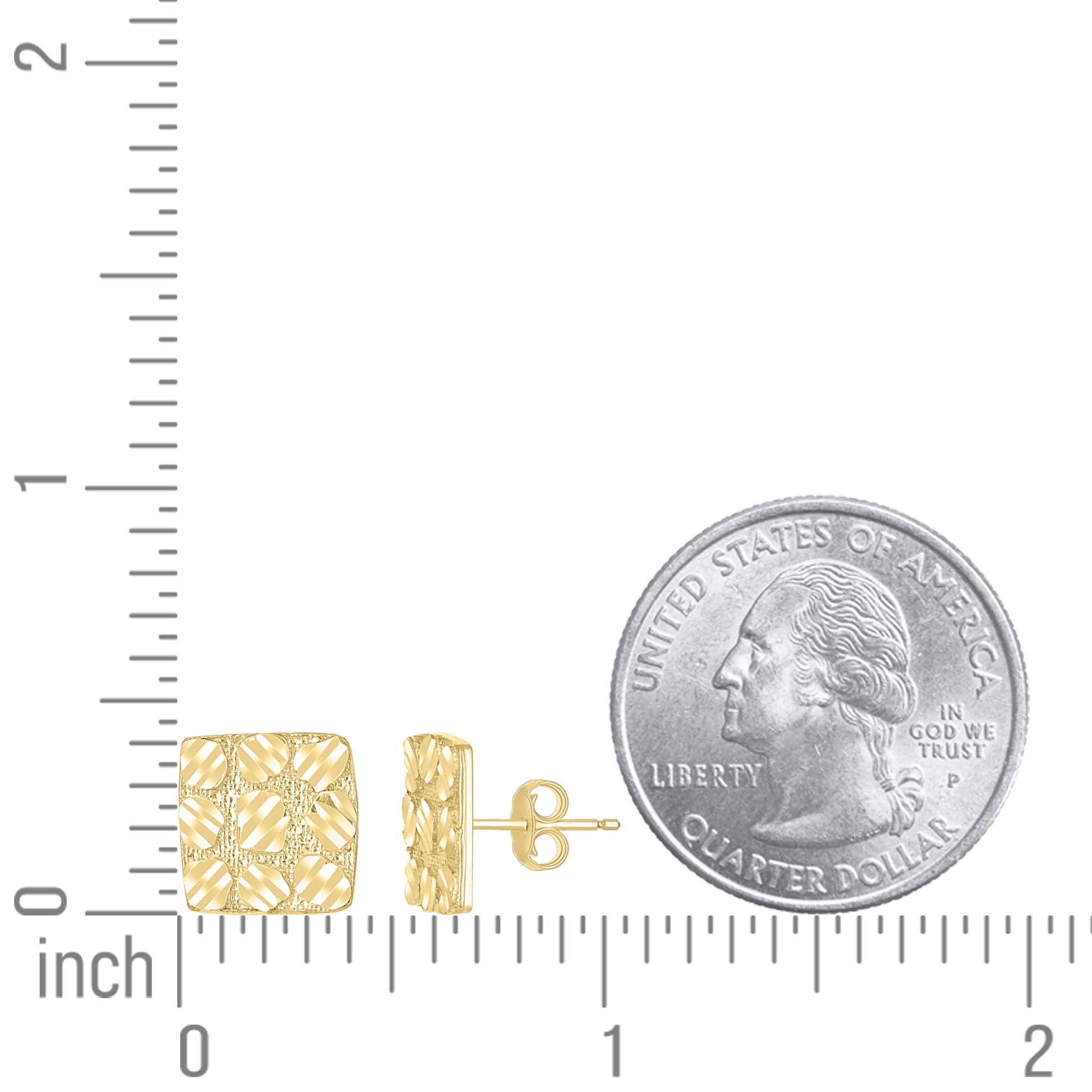 10kt Yellow Gold Unisex Square Nugget Stud Earrings