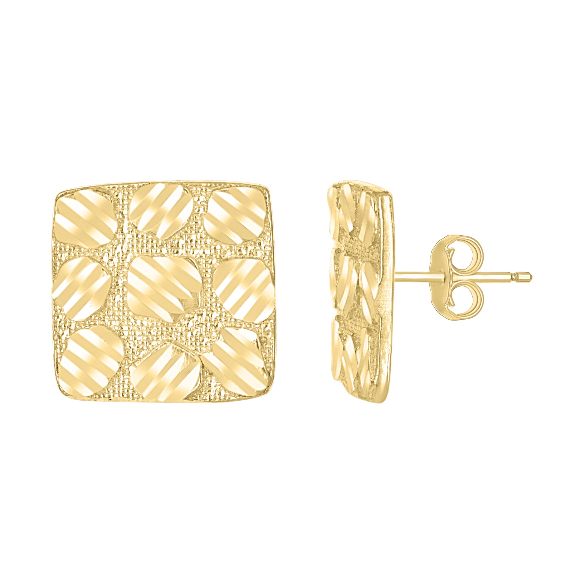 10kt Yellow Gold Unisex Square Nugget Stud Earrings
