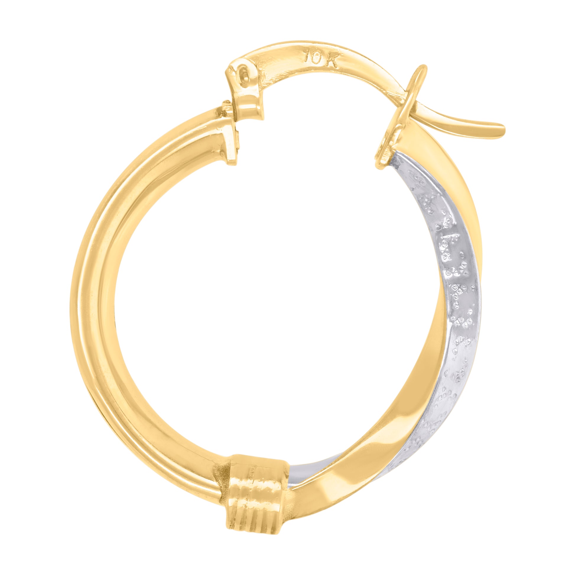 10kt Two-Tone Gold Womens Baguette Cubic-Zirconia Textured Twisted Hoops Huggies Earrings