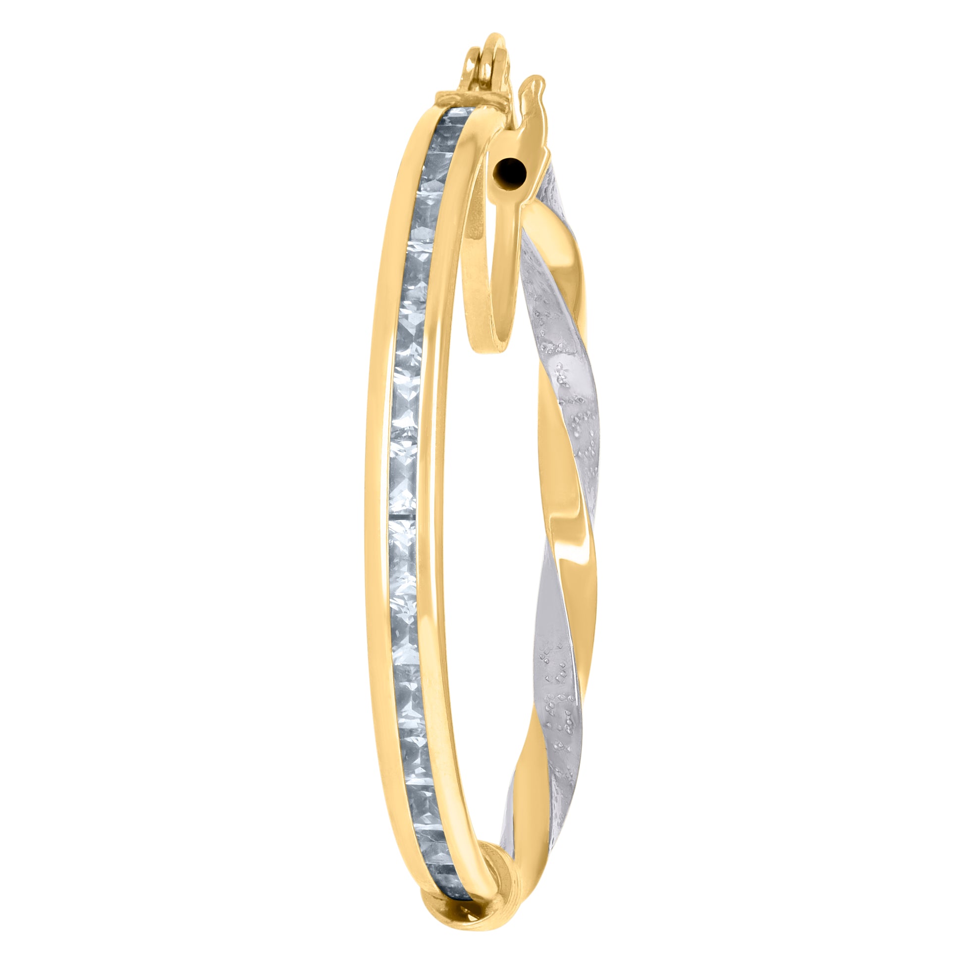 10kt Two-Tone Gold Womens Baguette Cubic-Zirconia Textured Twisted Hoops Huggies Earrings