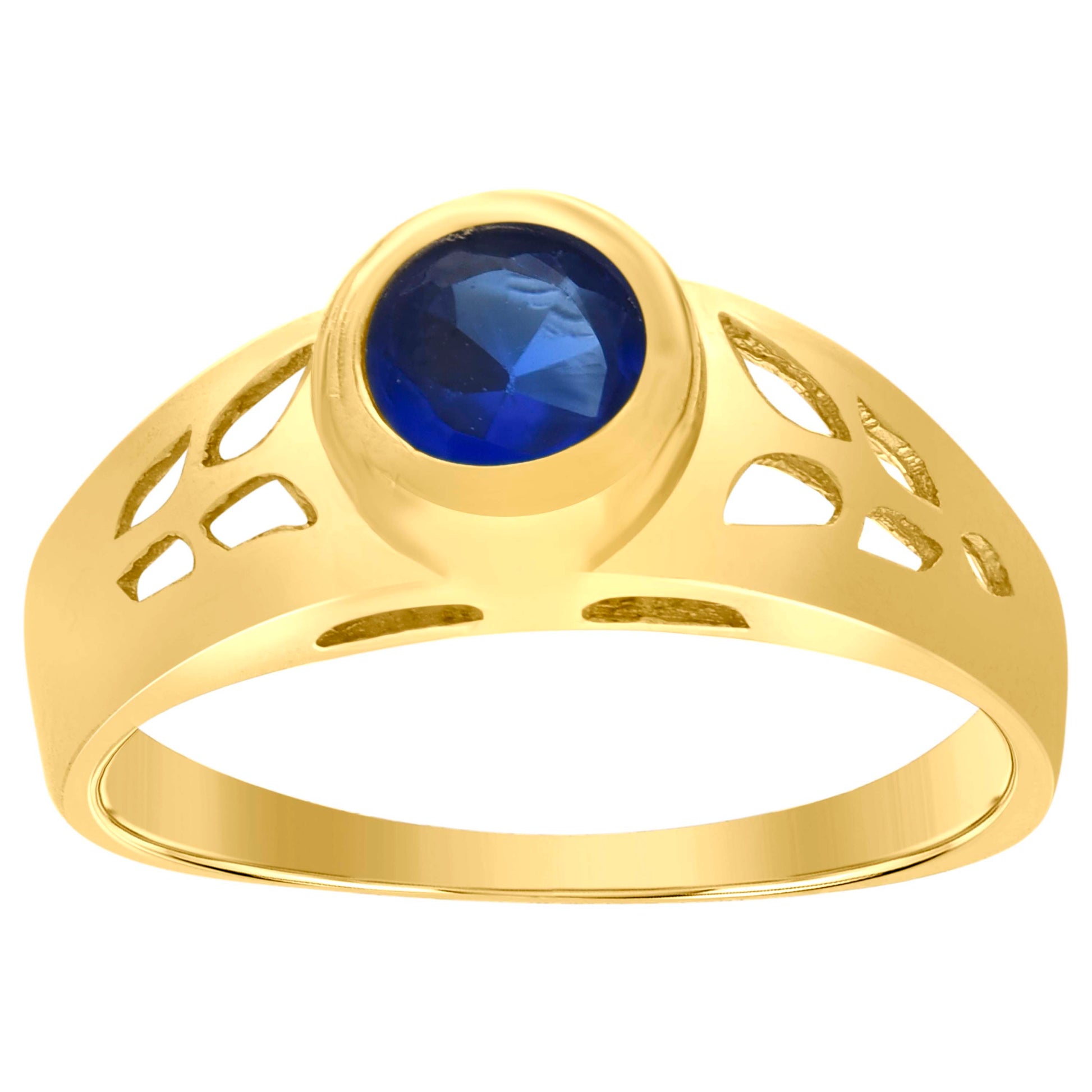 10kt Yellow Gold Baby Round Blue Cubic Zirconia Birth Stone Ring