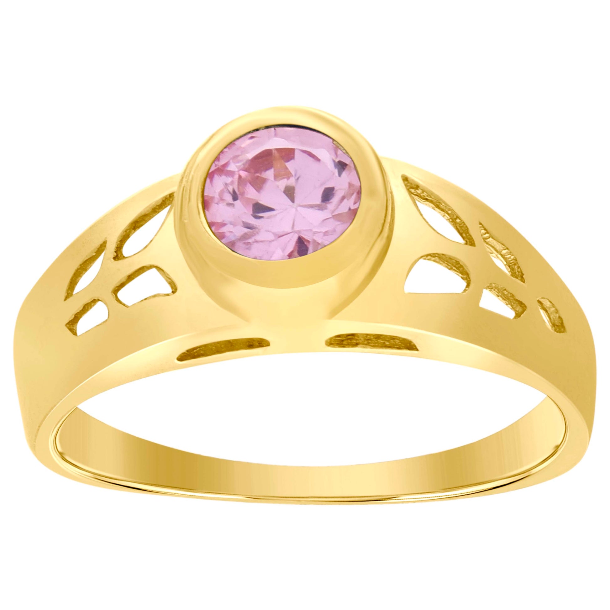 10kt Yellow Gold Baby Round Pink Cubic Zirconia Birth Stone Ring