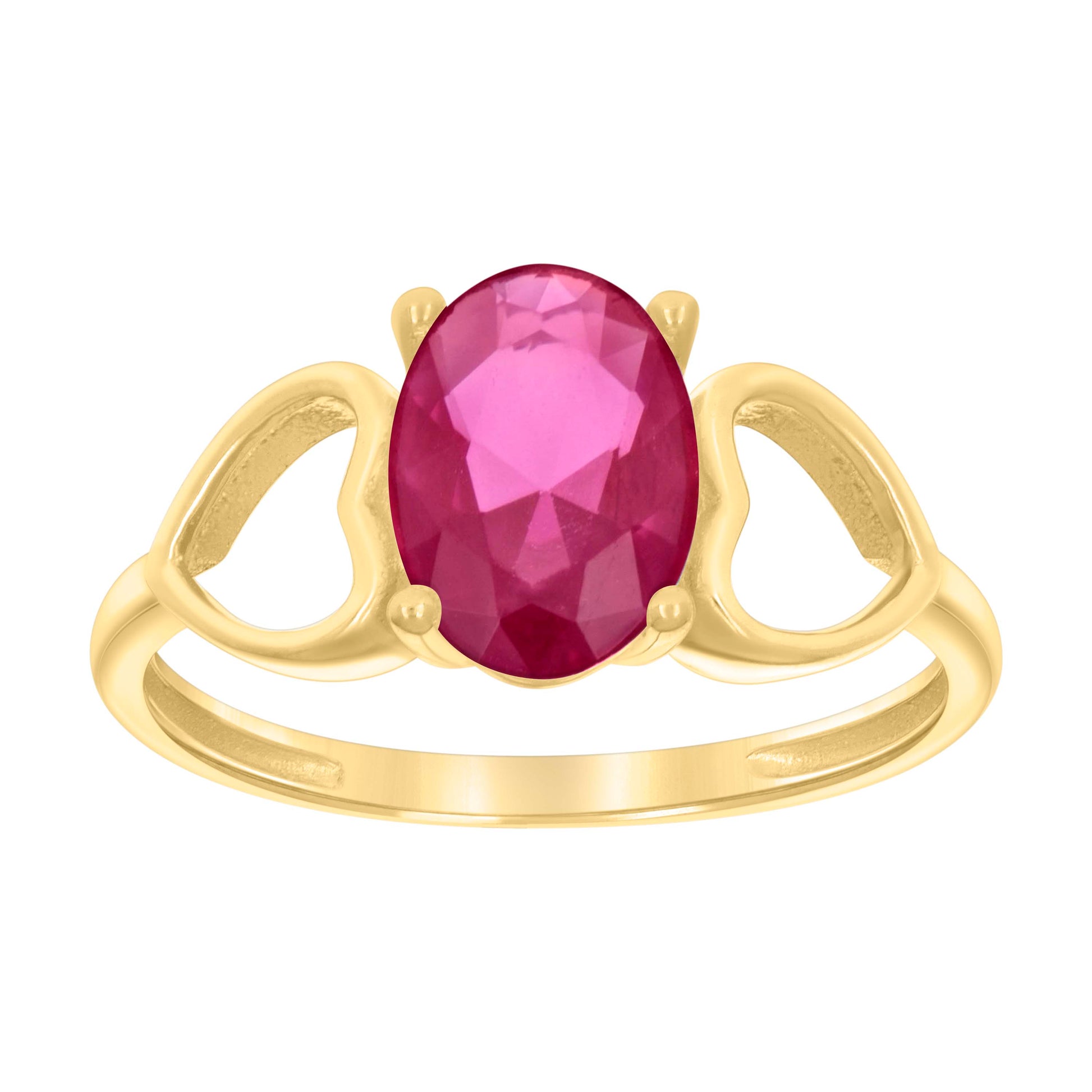 10kt Yellow Gold Baby Red Oval Cubic-Zirconia Heart Ring