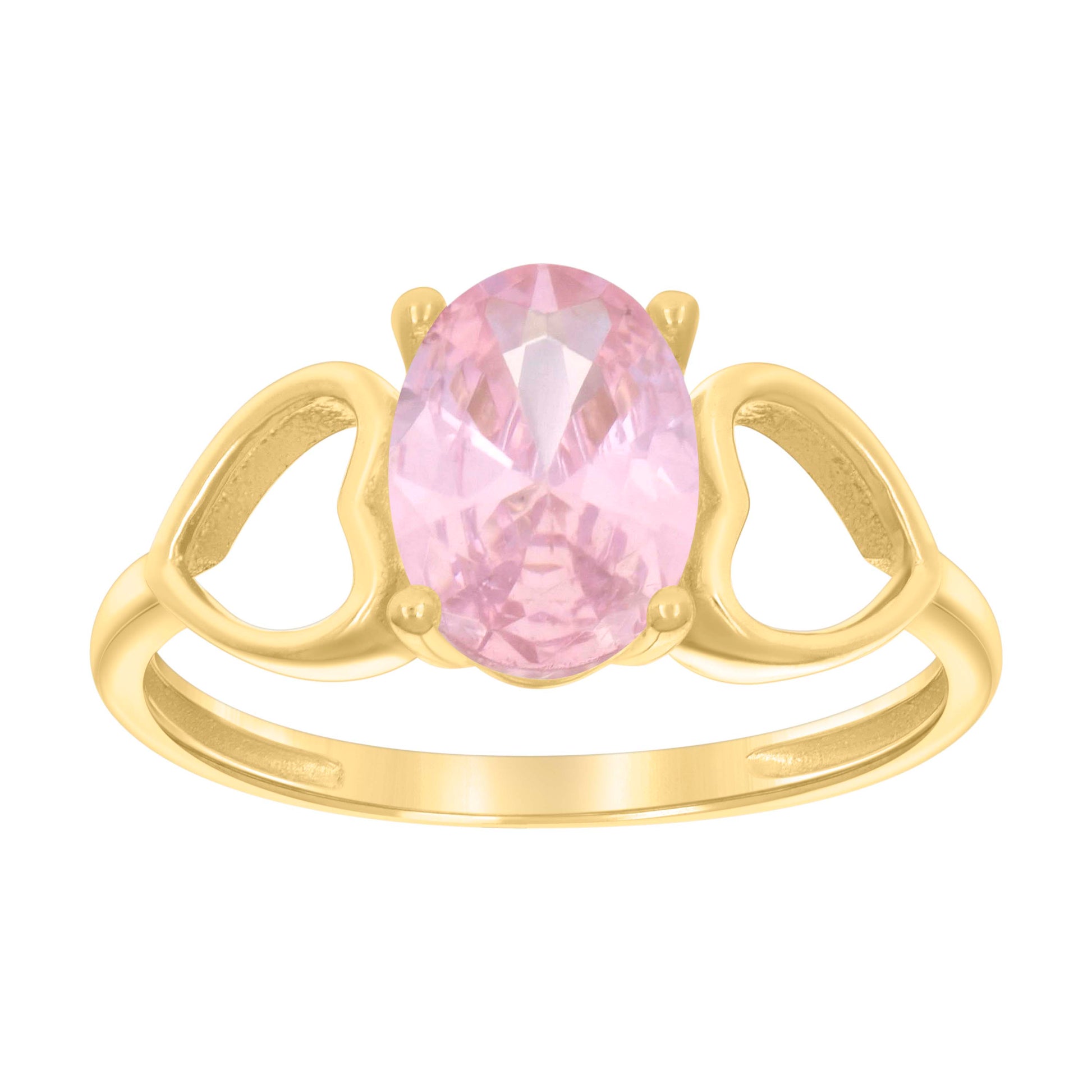 10kt Yellow Gold Baby Pink Oval Cubic-Zirconia Heart Ring