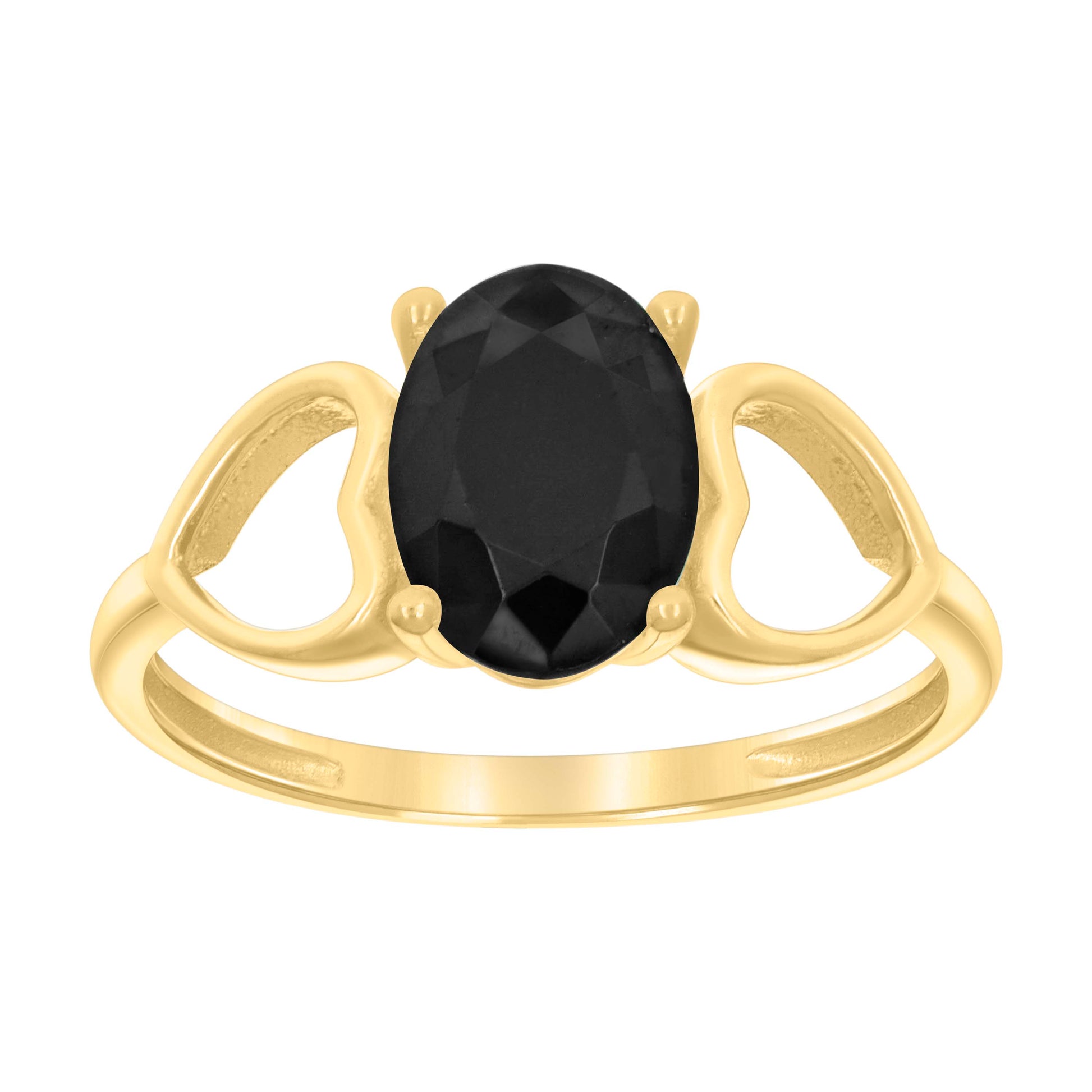 10kt Yellow Gold Baby Black Oval Cubic-Zirconia Heart Ring