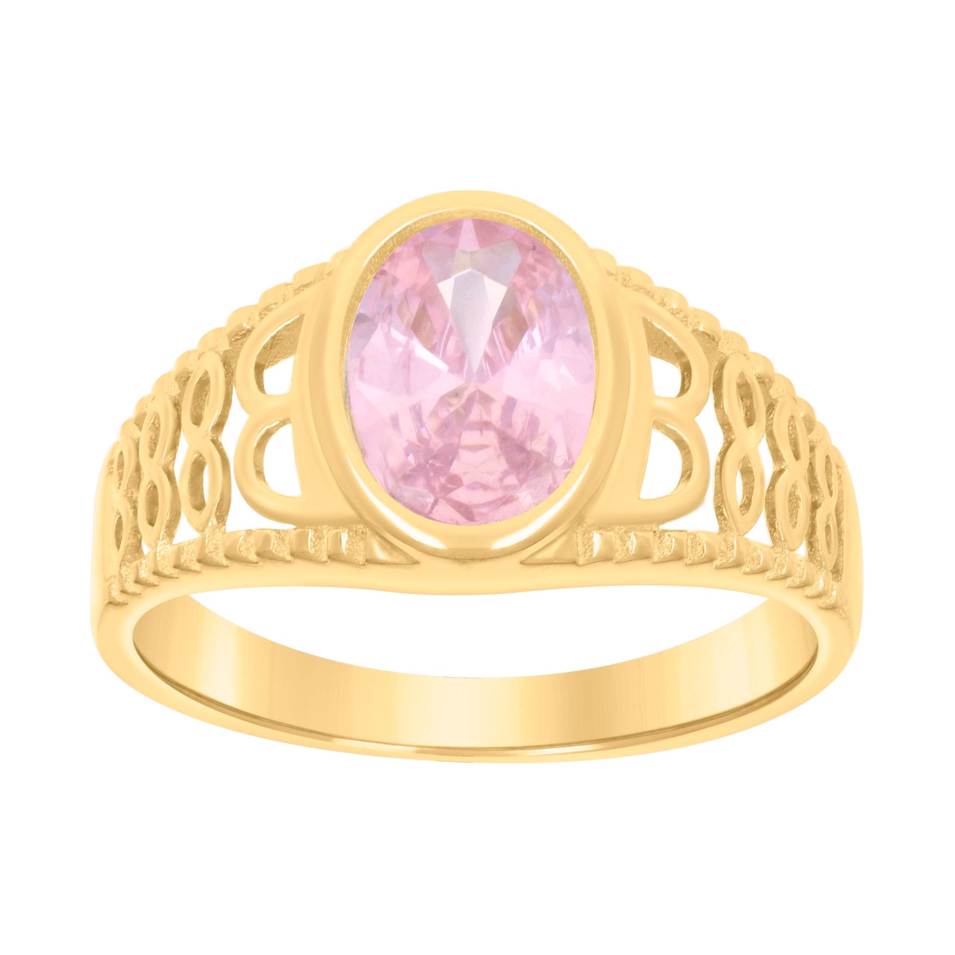 10kt Yellow Gold Baby Pink Oval Cubic-Zirconia Fashion Ring