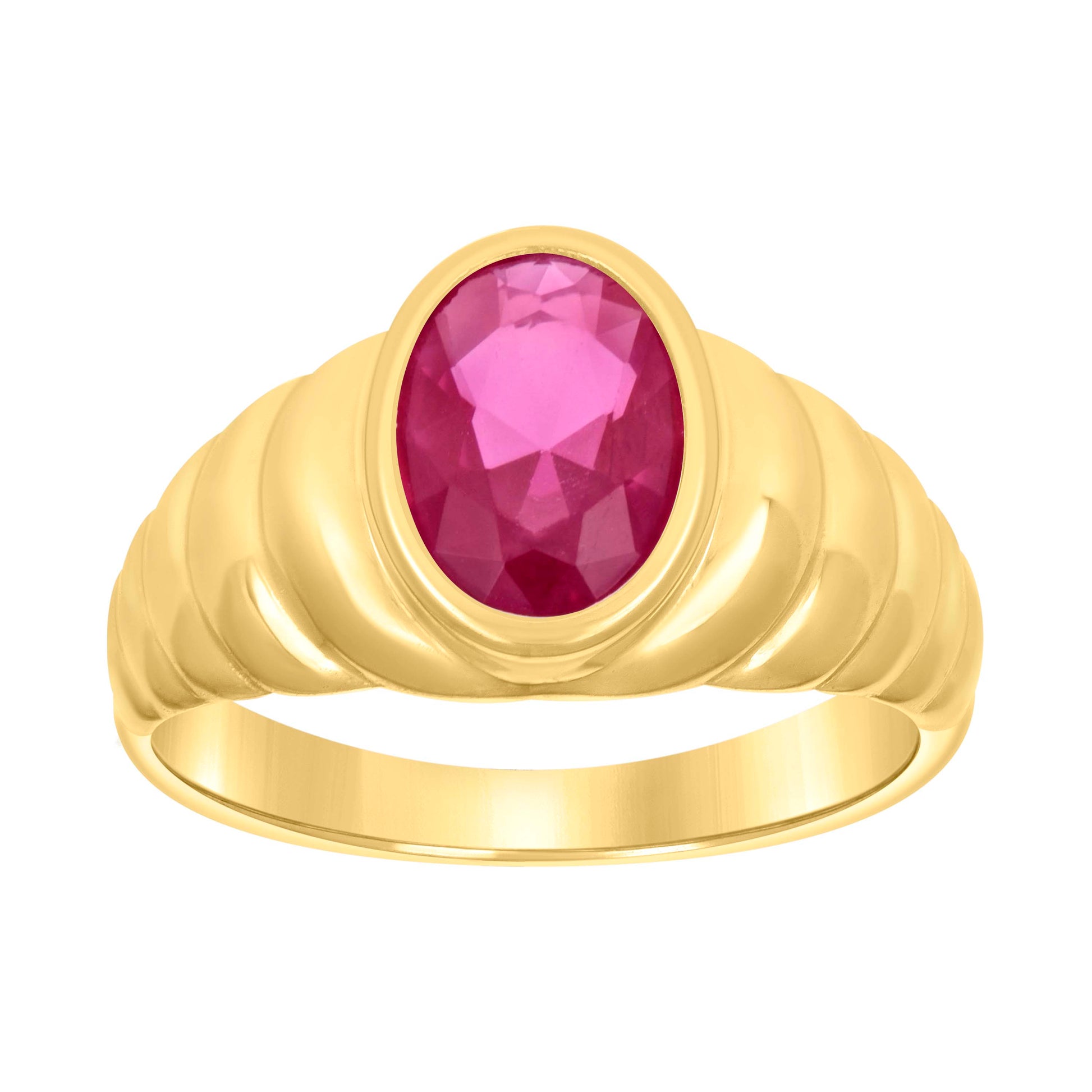 10kt Yellow Gold Baby Red Oval Cubic-Zirconia Oval Head Fashion Ring