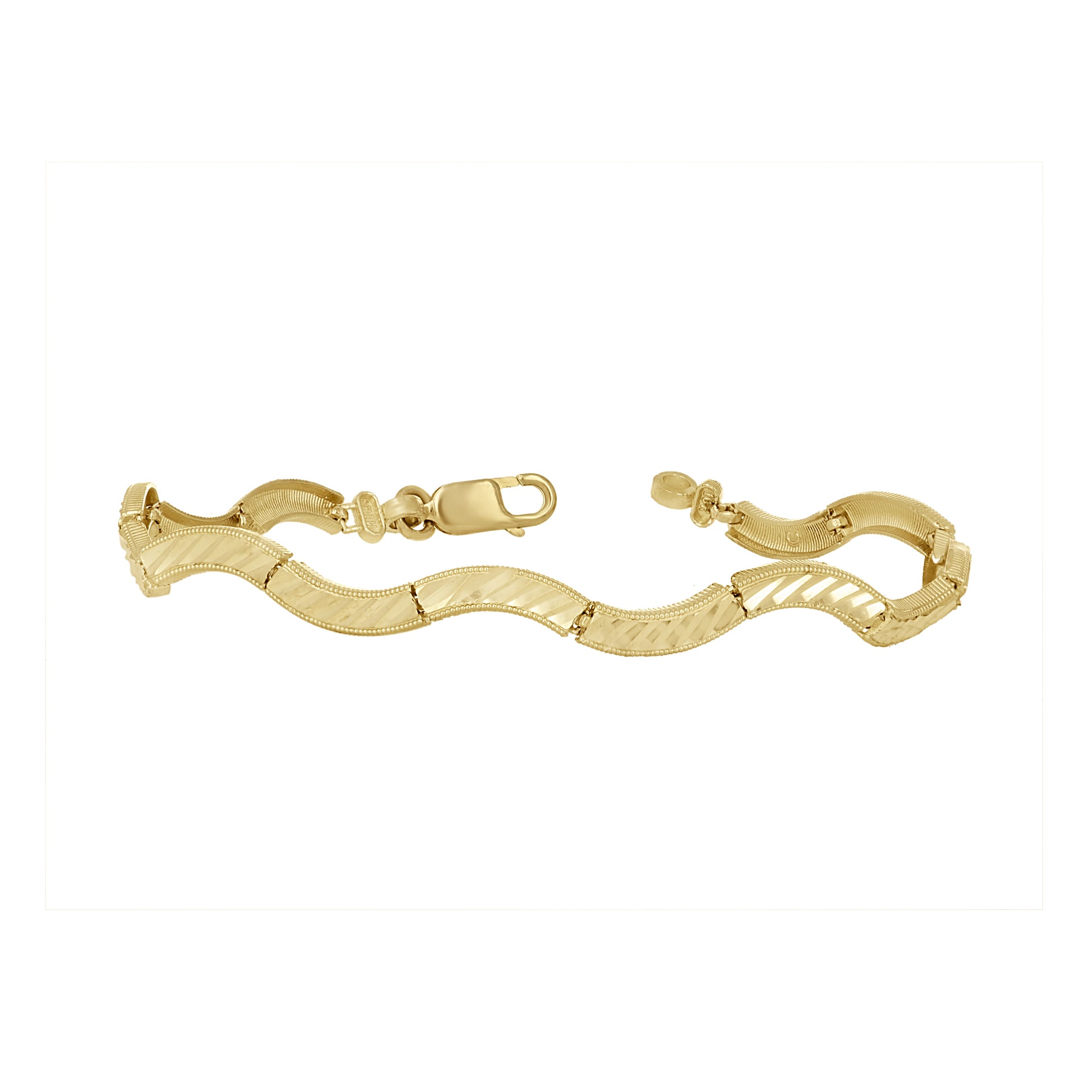 10kt Yellow Gold Womens Wave Pattern Link Bracelet Size 7 Inches