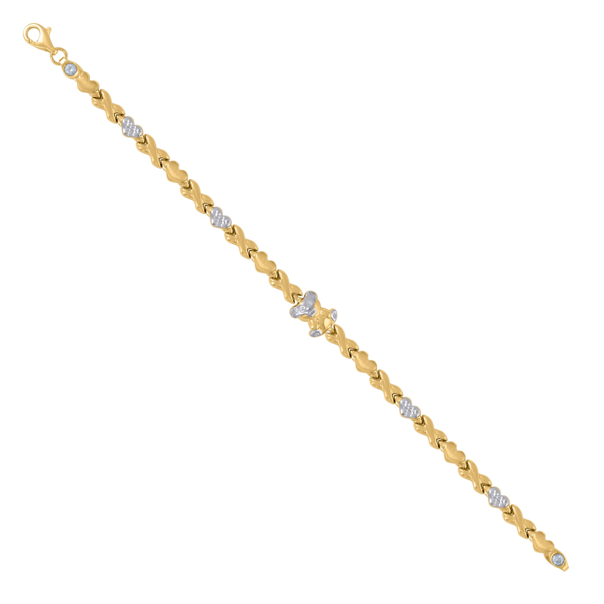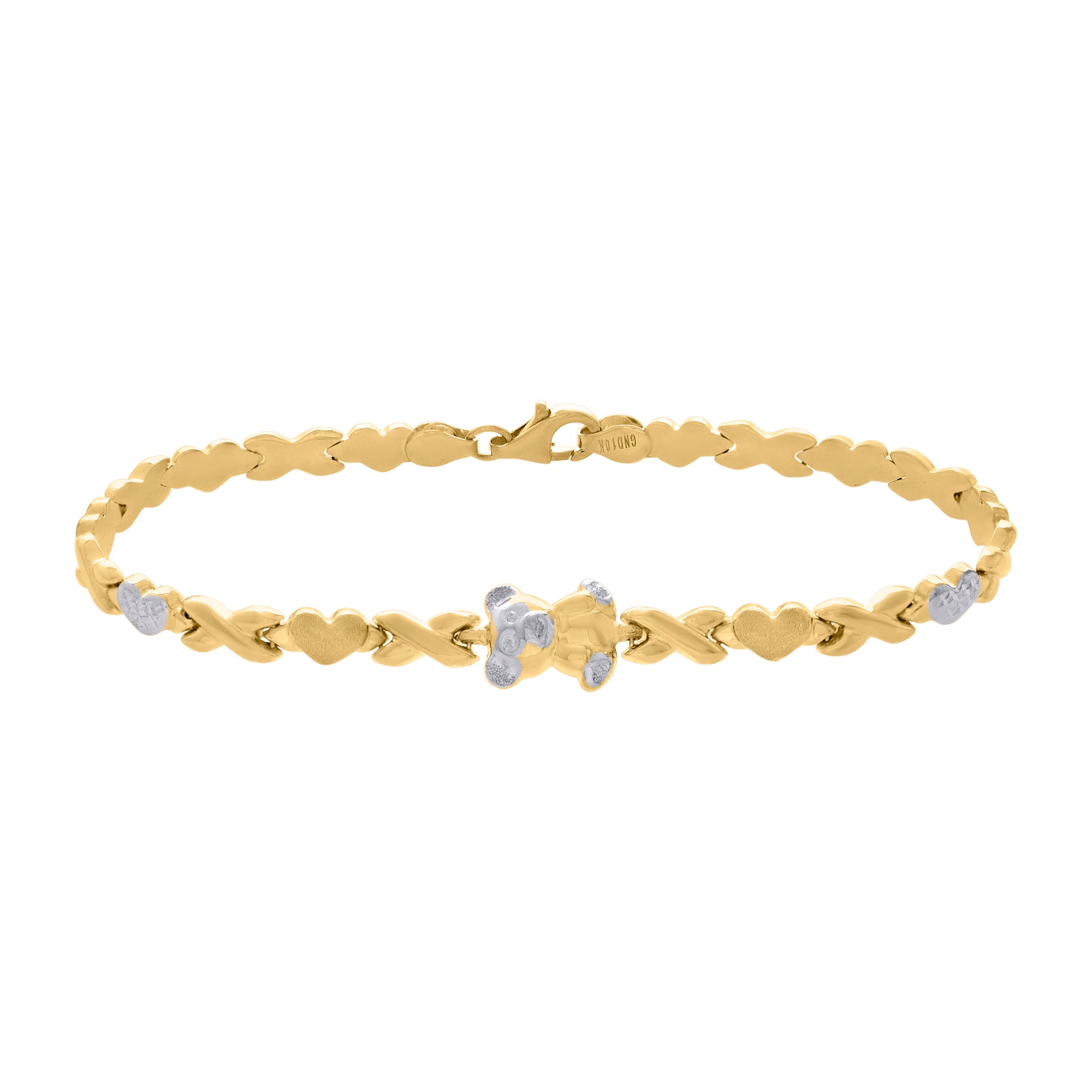 10kt Two-tone Gold Womens Teddy Bear Link 8" Bracelet