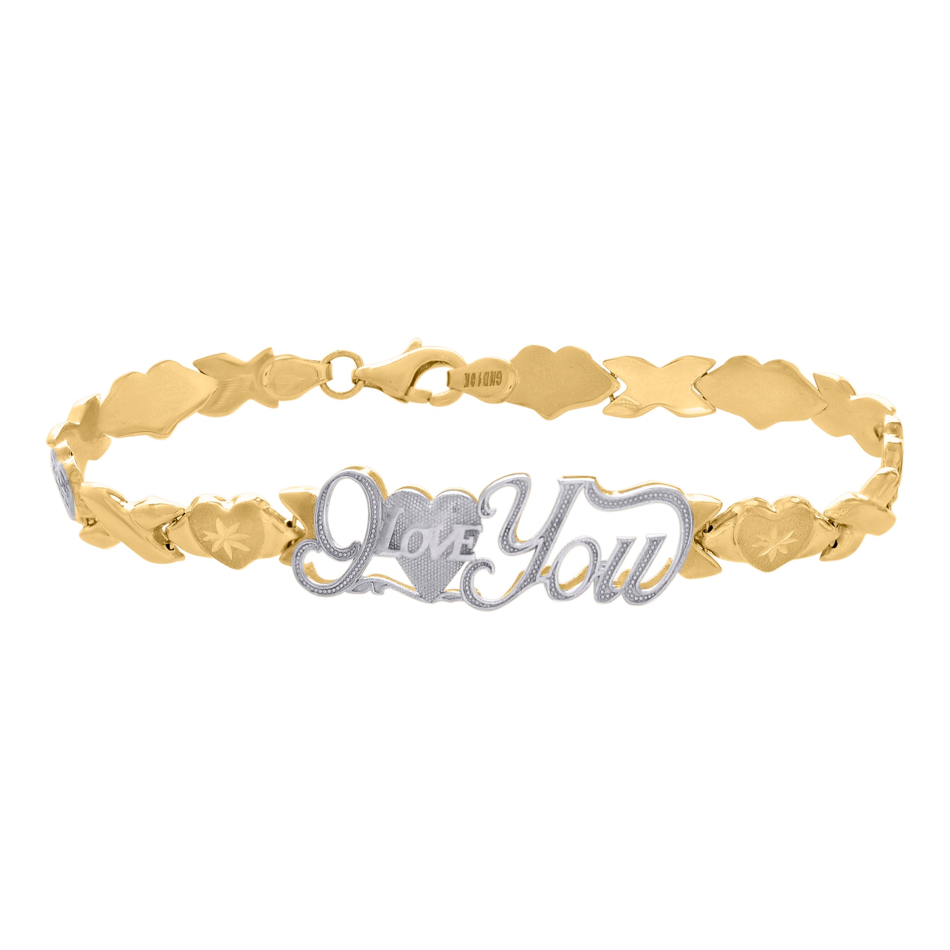 10kt Two-tone Gold Womens I LOVE YOU Heart Link 7" Bracelet