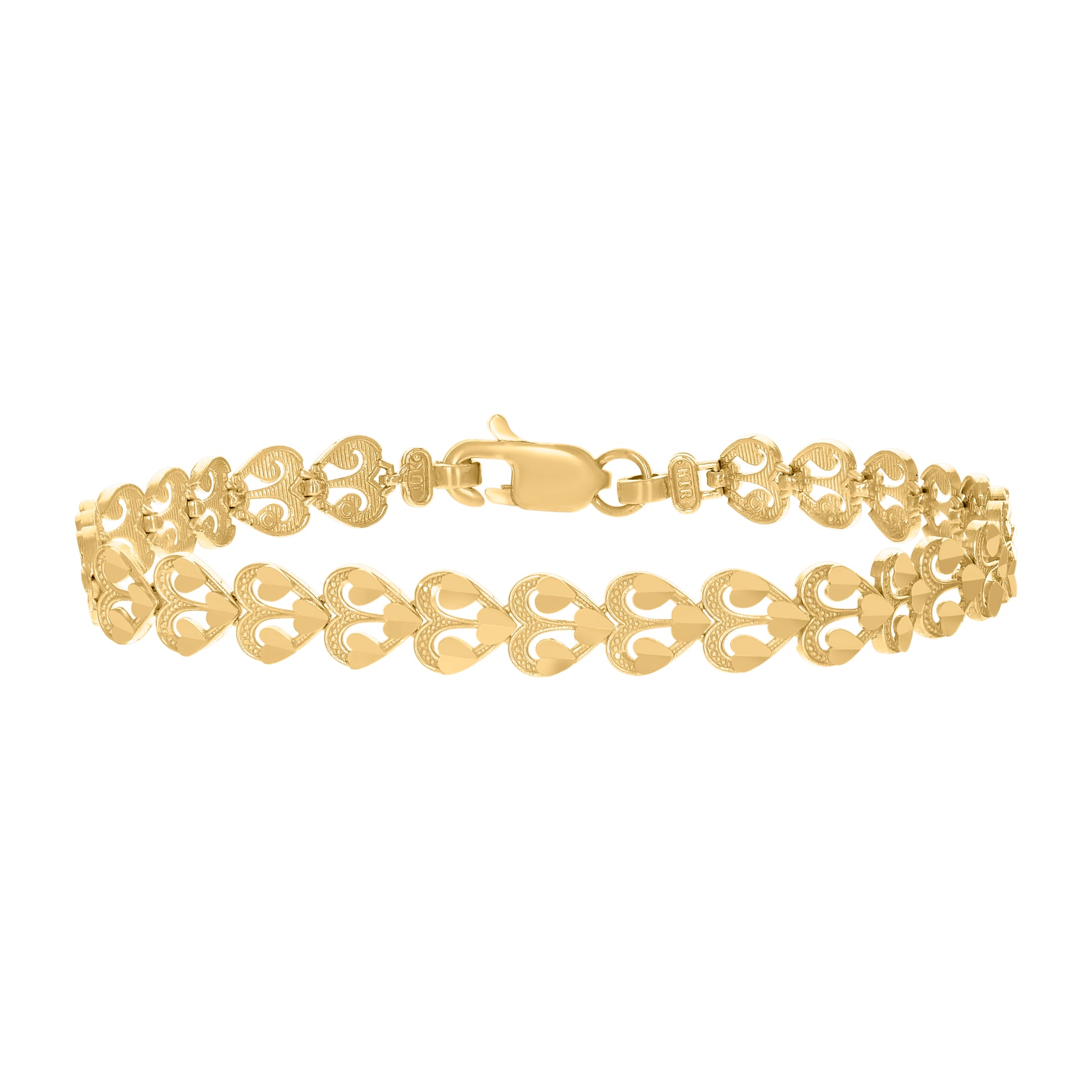 10kt Yellow Gold Womens Heart Link 7" Bracelet